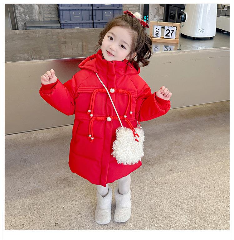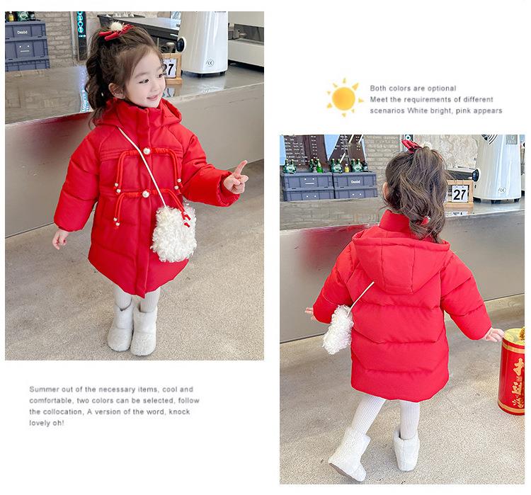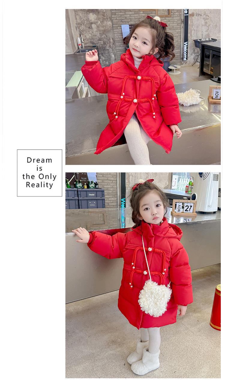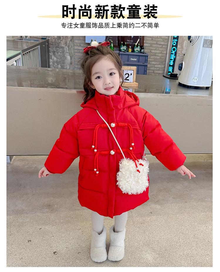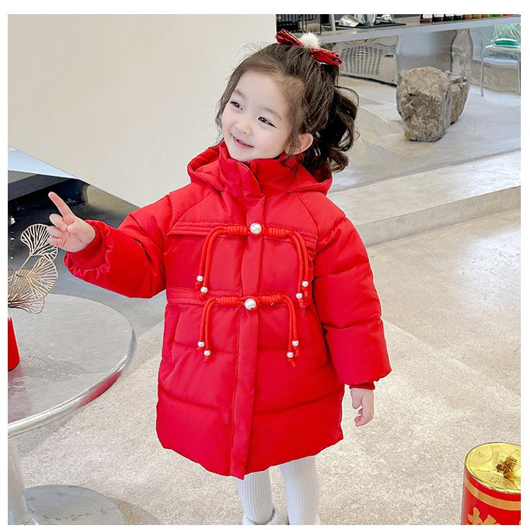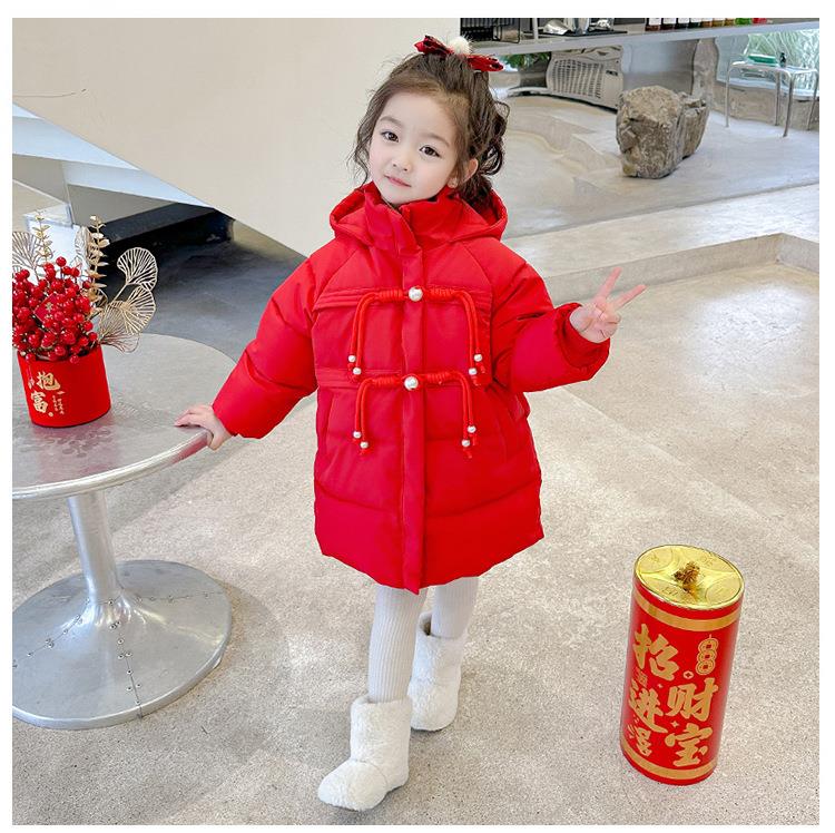 女童国风盘扣年服棉衣冬装洋气外套宝宝中长款大衣儿童童装潮