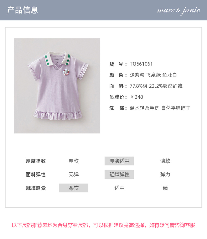 马克珍妮元气花边女童凉感POLO裙2026年夏装新款561061