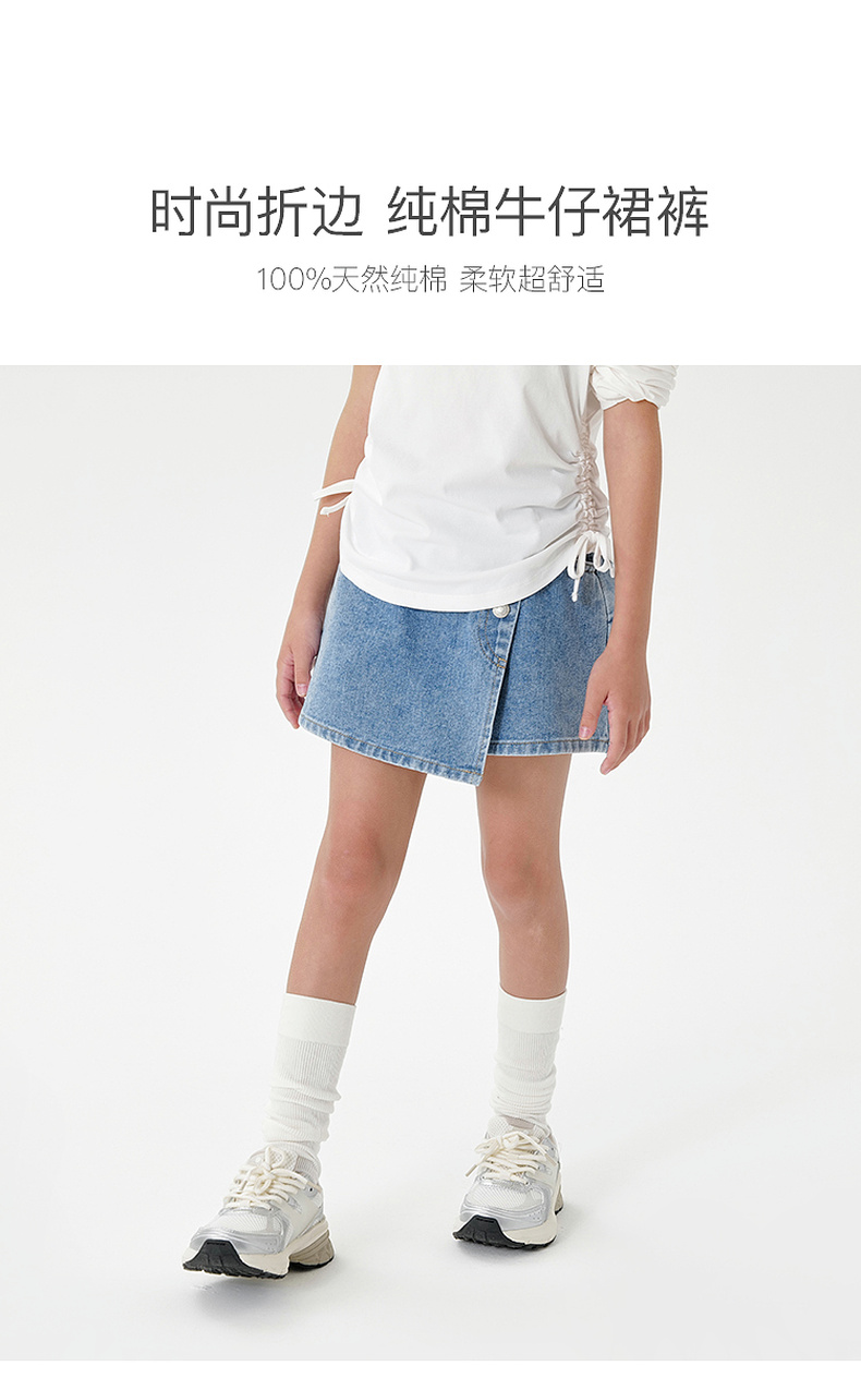 马克珍妮女童时尚折边牛仔裙裤儿童短裤纯棉2025年春夏新款550851