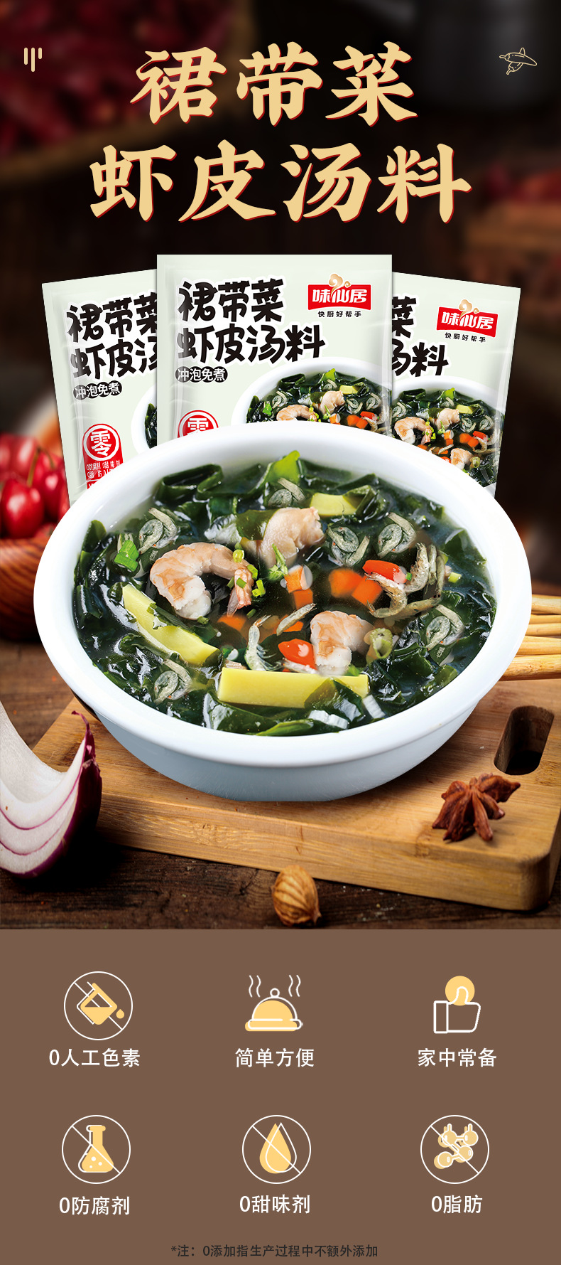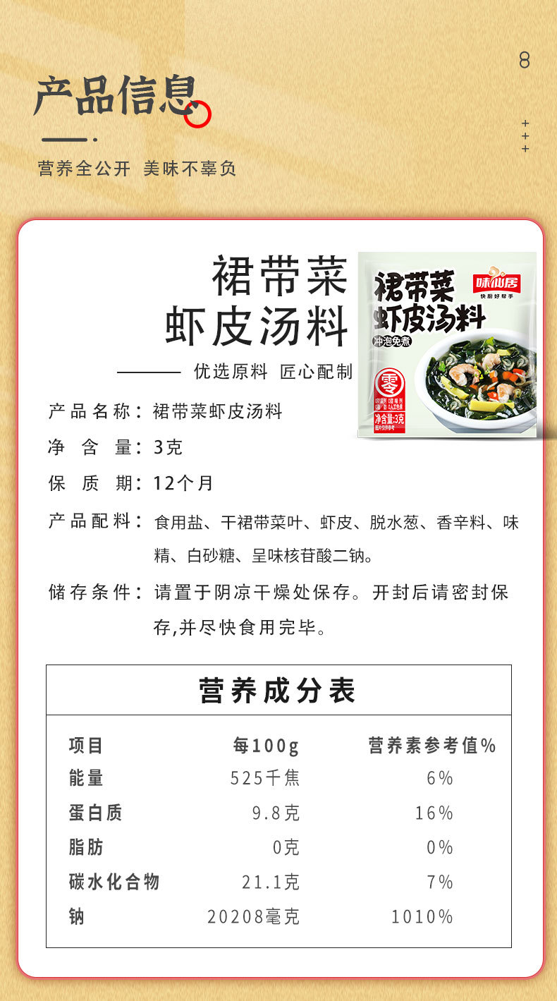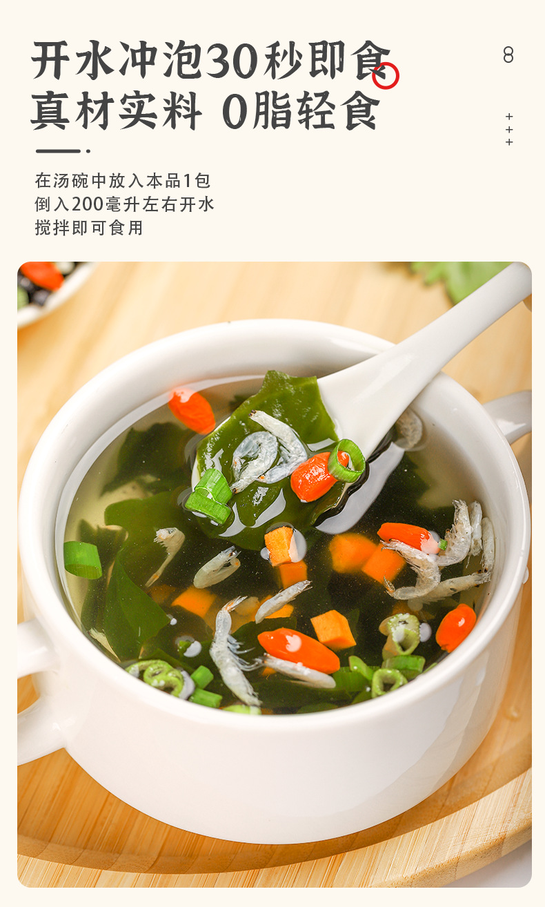 【11.9抢10袋❗️裙带菜虾皮速食汤料包】汤鲜味美,即冲即食,0脂轻食!紫菜汤冲泡即食小包海藻汤免煮馄饨汤料