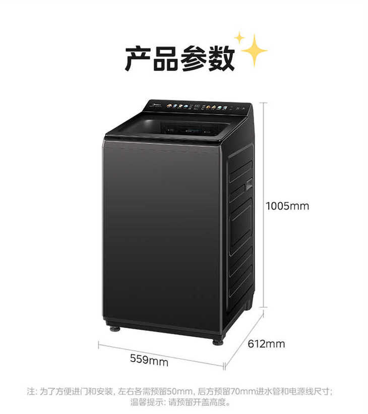 美的(252288)MB10F2 波轮全自动洗衣机 金属钛 门盖金属钛,白玻,普通银丝印 钢化玻璃 波轮式 220V