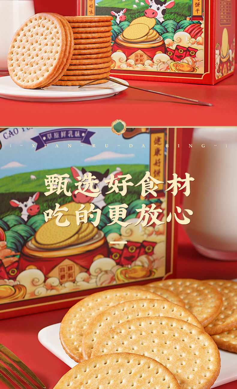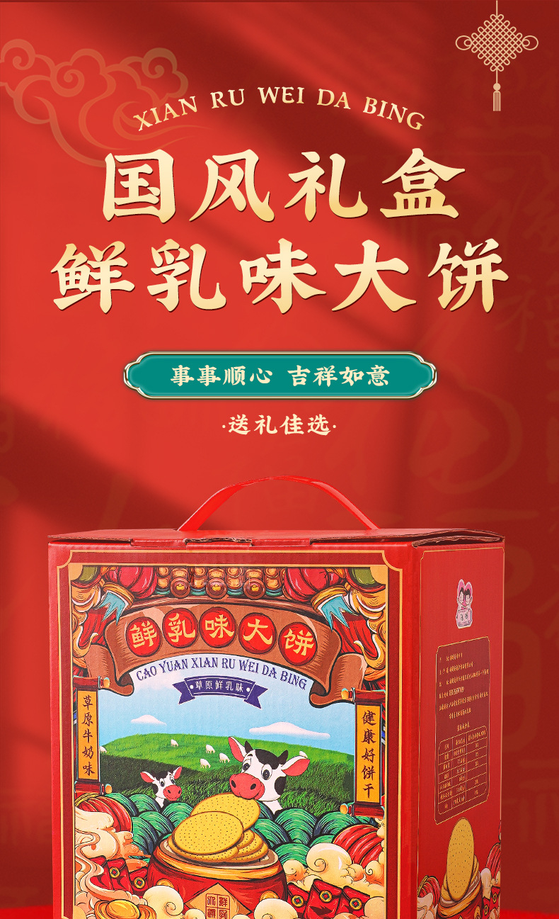 【国风好礼!草原鲜乳大饼礼盒套装】牛乳的香气,口感酥脆,营养满满!香酥牛乳饼营养早餐饼饼干零食,