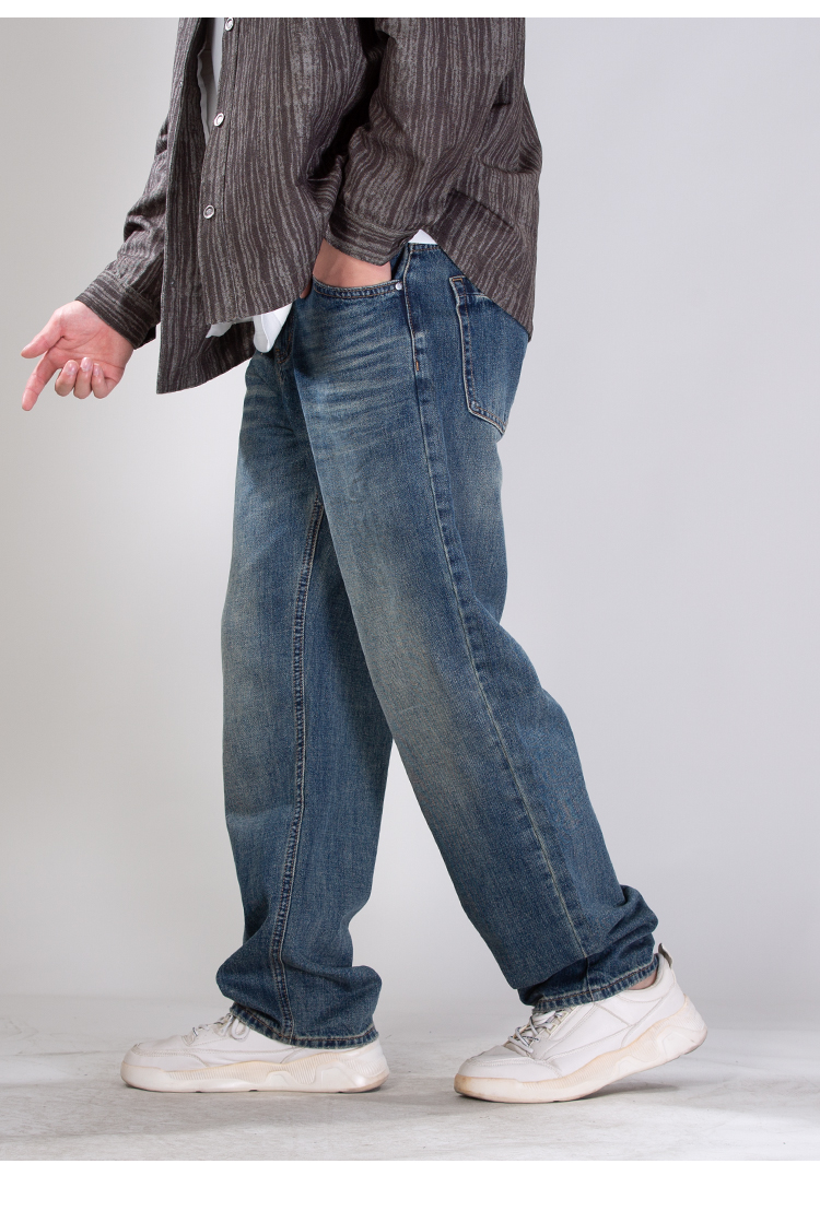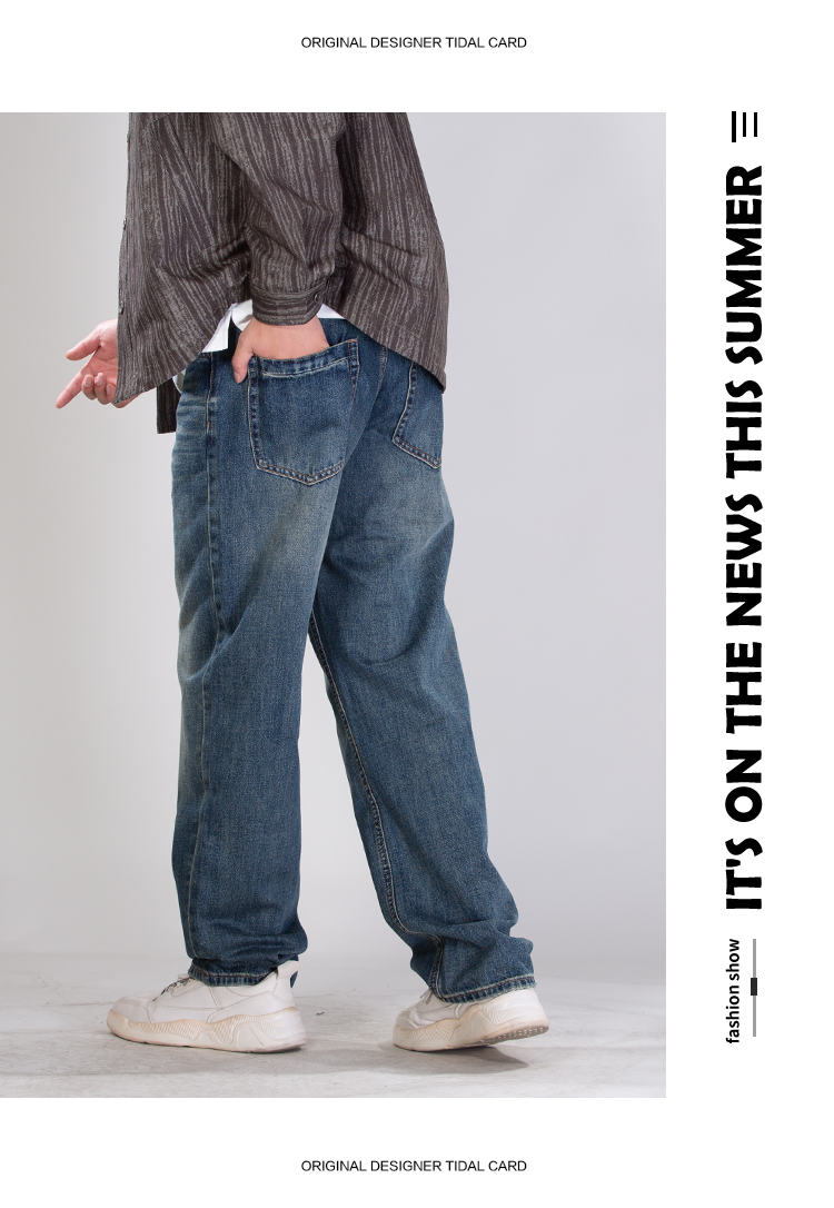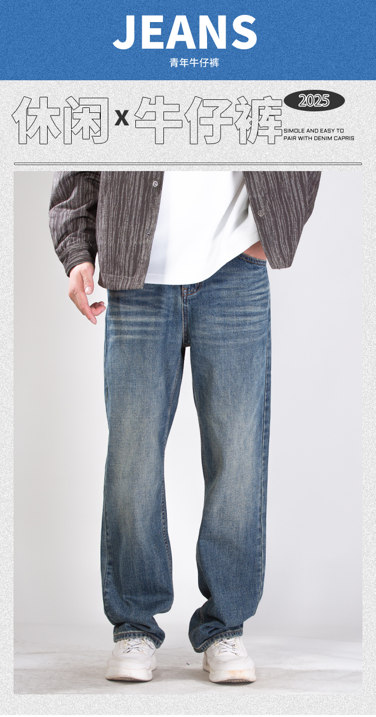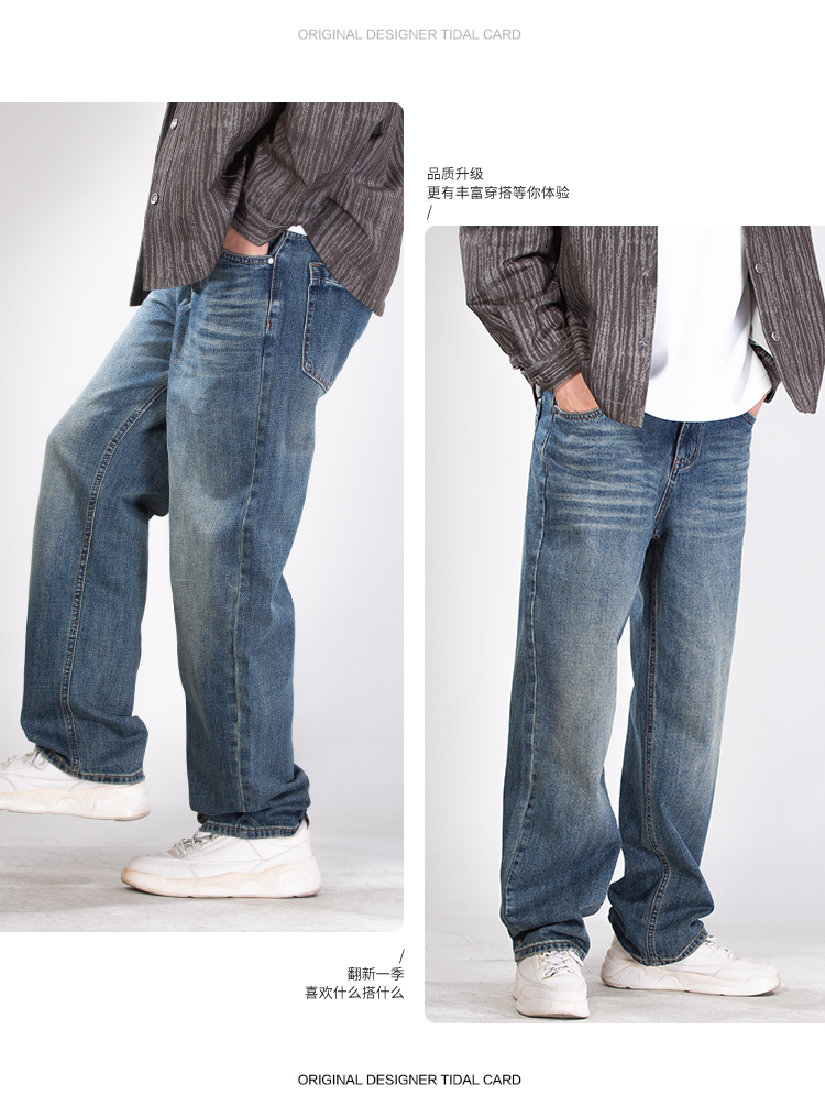 DRONKOO 2025 正常腰钉扣裂纹编织皮牌中厚牛仔长裤