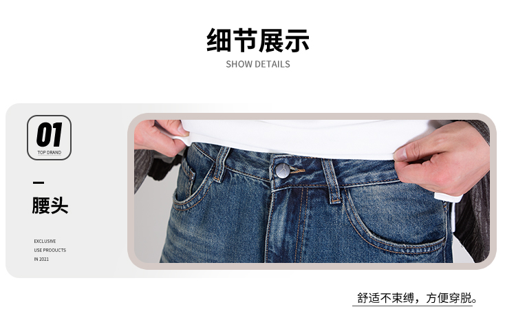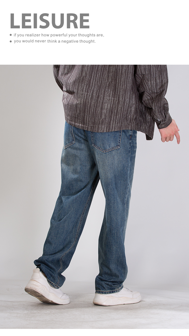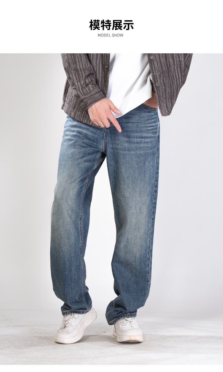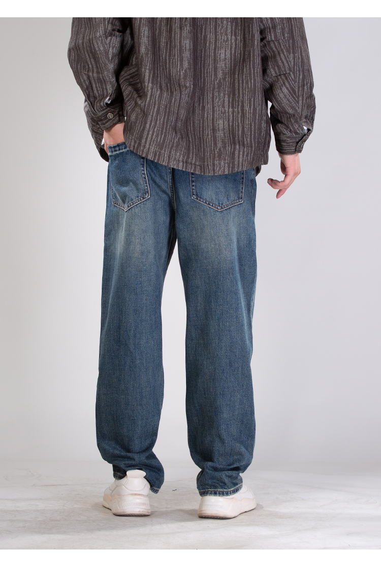 DRONKOO 2025 正常腰钉扣裂纹编织皮牌中厚牛仔长裤