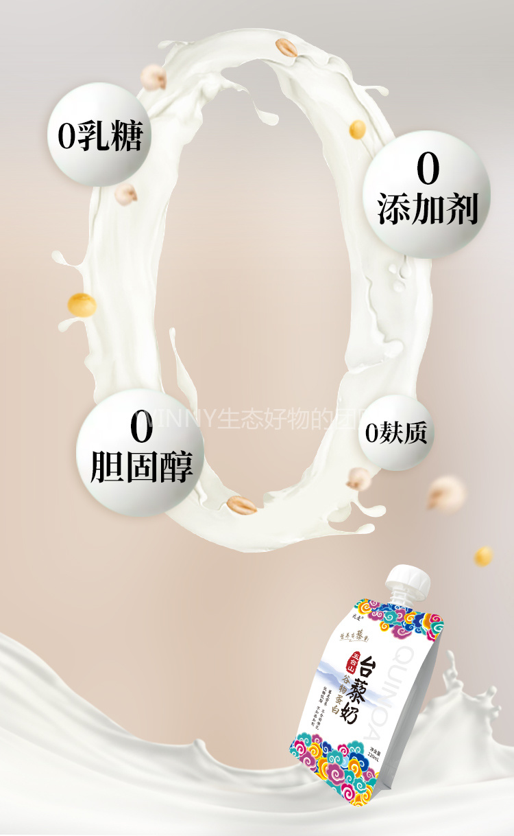 藜麦含有等同于牛奶的完全蛋白质,保证了台藜奶的蛋白质高品质。