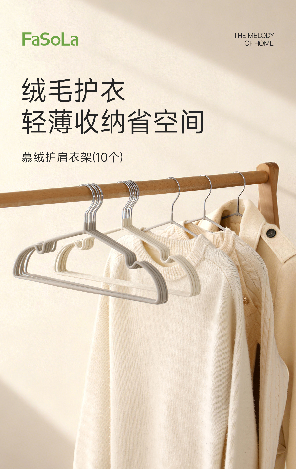 FaSoLa无痕护肩植绒衣架新款家用加厚防滑防鼓包学生宿舍用挂衣架
