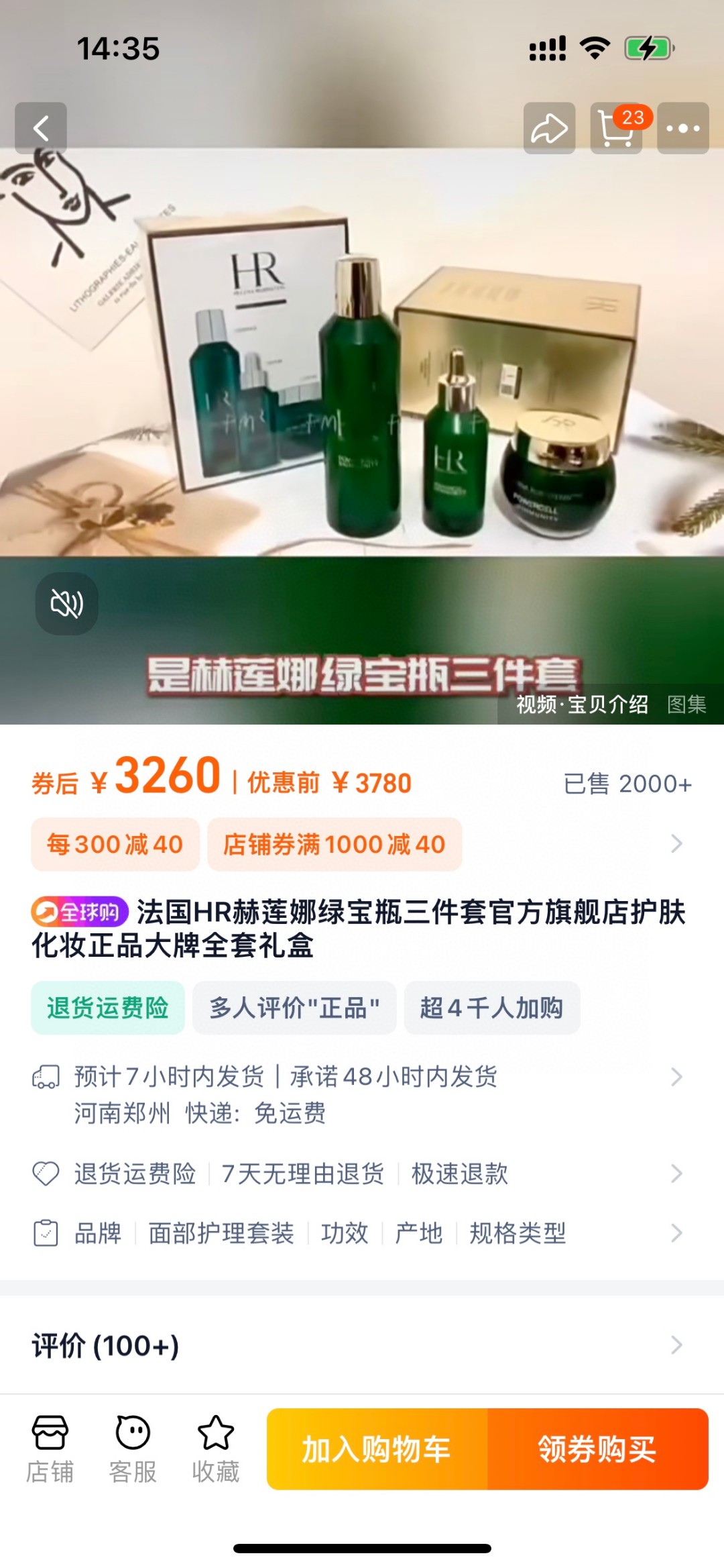 超低价HR/赫莲娜新版绿宝瓶三件套悦活修护新肌水200ml精华50ml面霜50ml