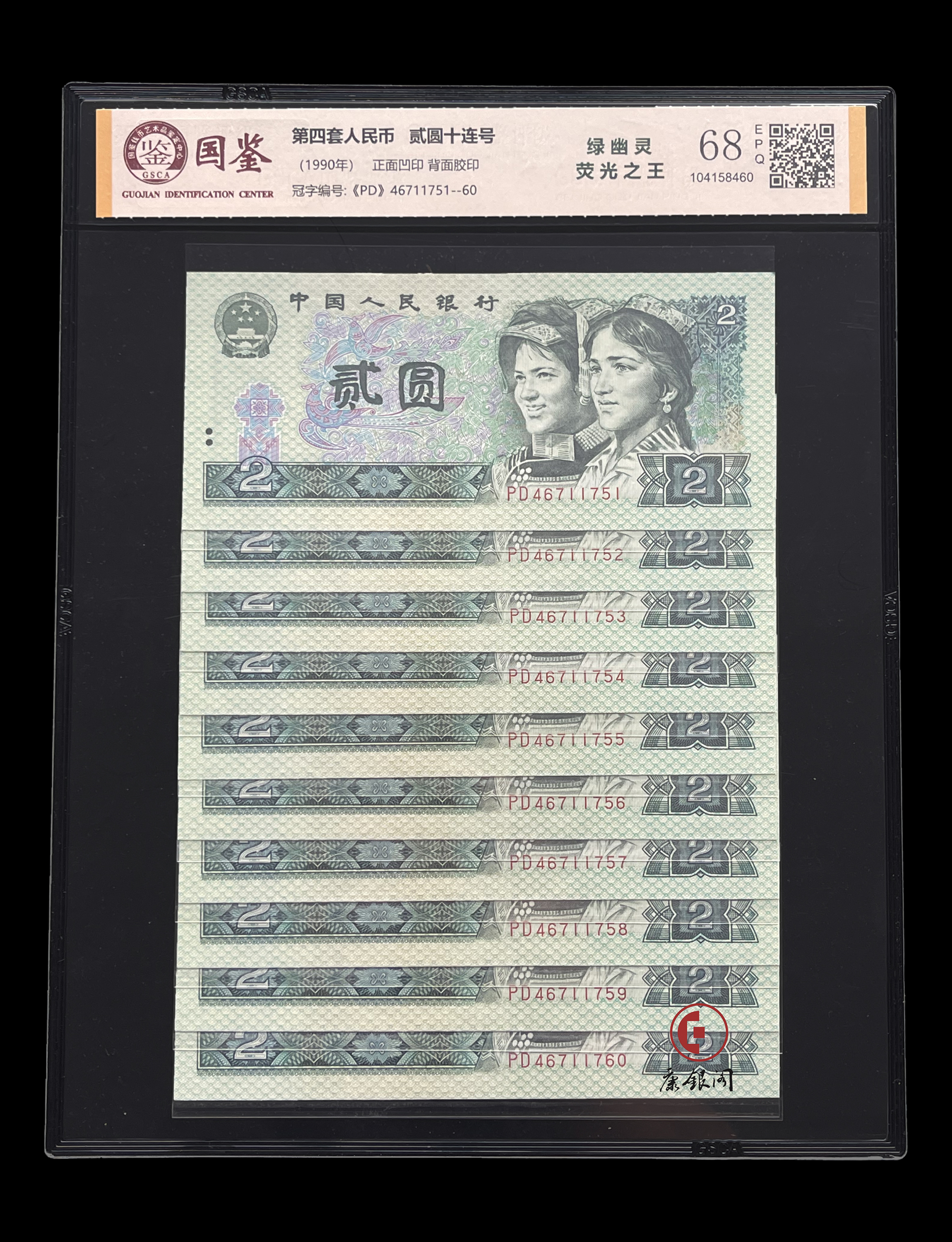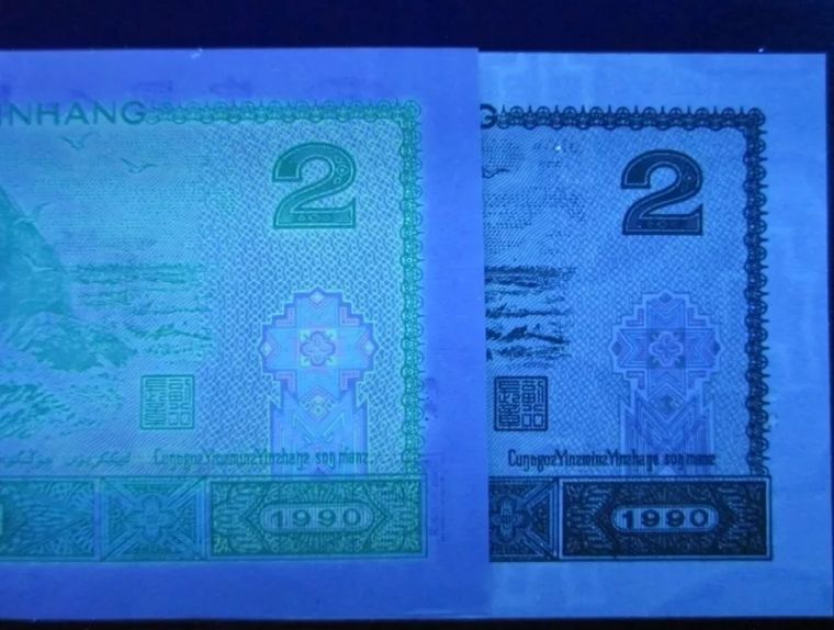 什么是“绿幽灵”呢?所谓“绿幽灵”就是90版贰元纸币票面在荧光灯下呈现一片翠绿的荧光效果,由于这种荧光效果遍布整张钞票,满版翠绿,剔透晶莹,堪比极珍翡翠,固而拥有“绿幽灵”的雅号。