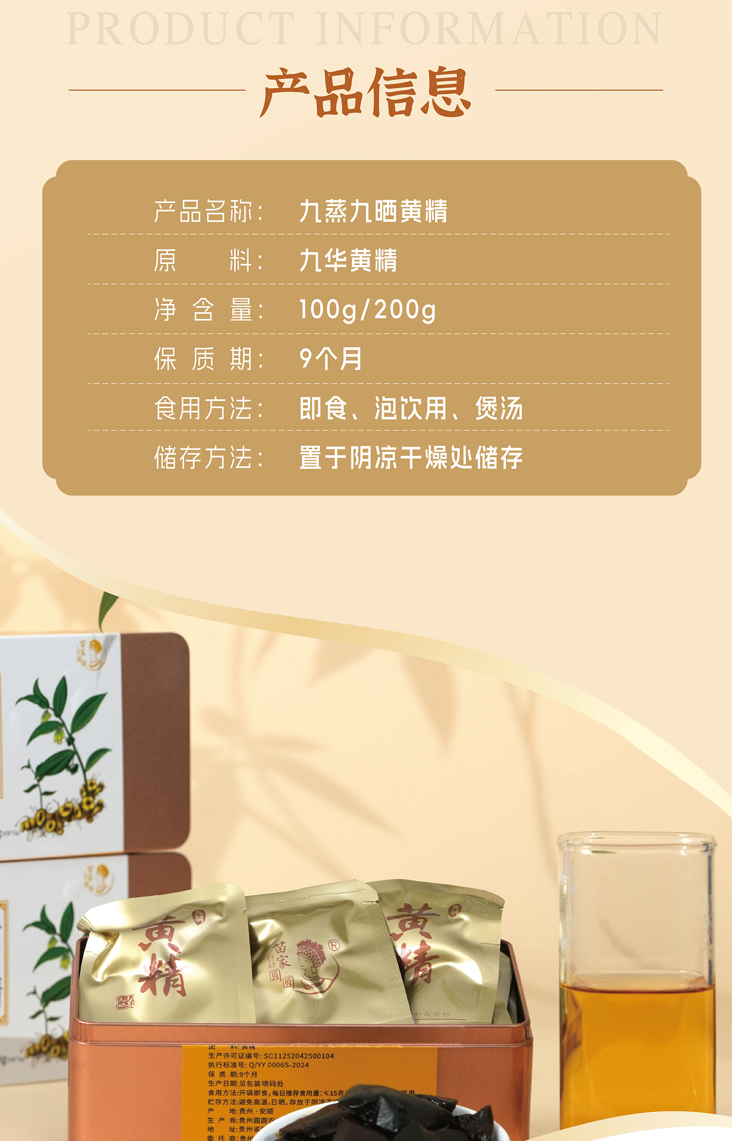 九华山 九蒸九晒黄精 苗家圆圆 包邮
