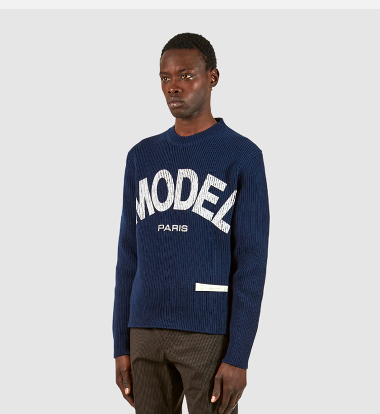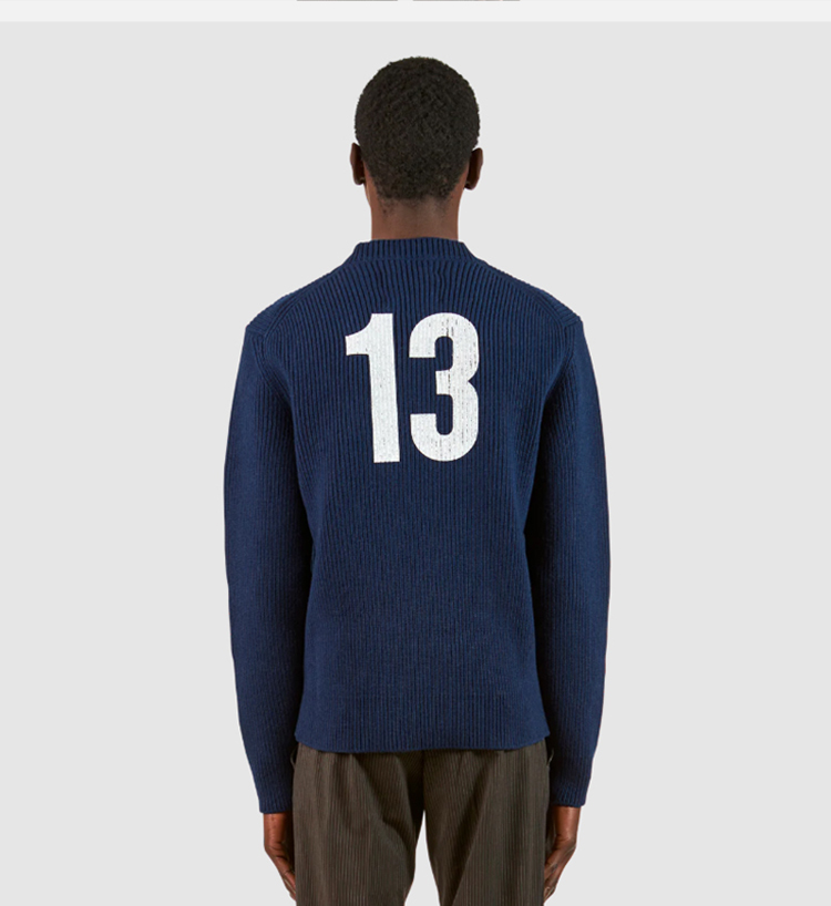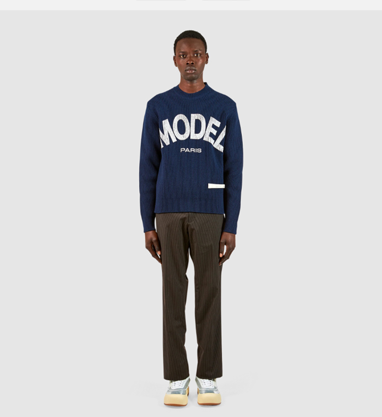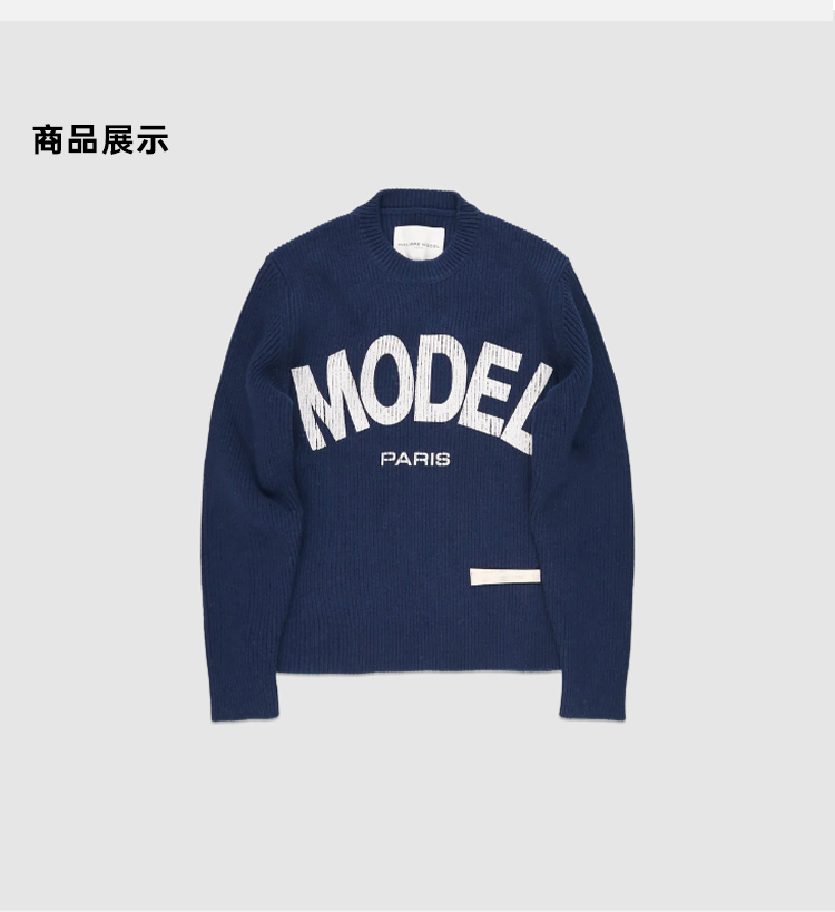 PHILIPPE MODEL 男士字母徽标印花羊毛混纺圆领针织衫 蓝色 SWCU MR06 38