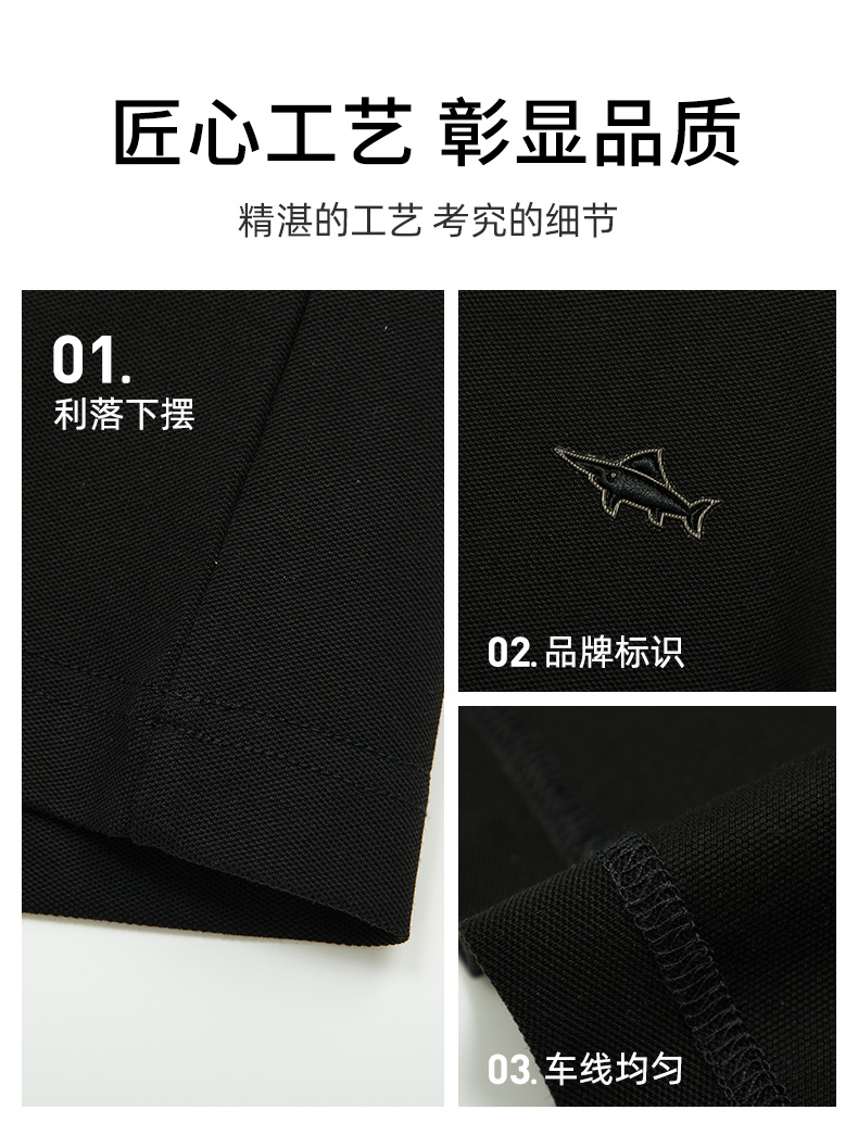 【莱赛尔】德鲨鲨鱼黑色短袖POLO衫男青年夏季新款翻领T恤