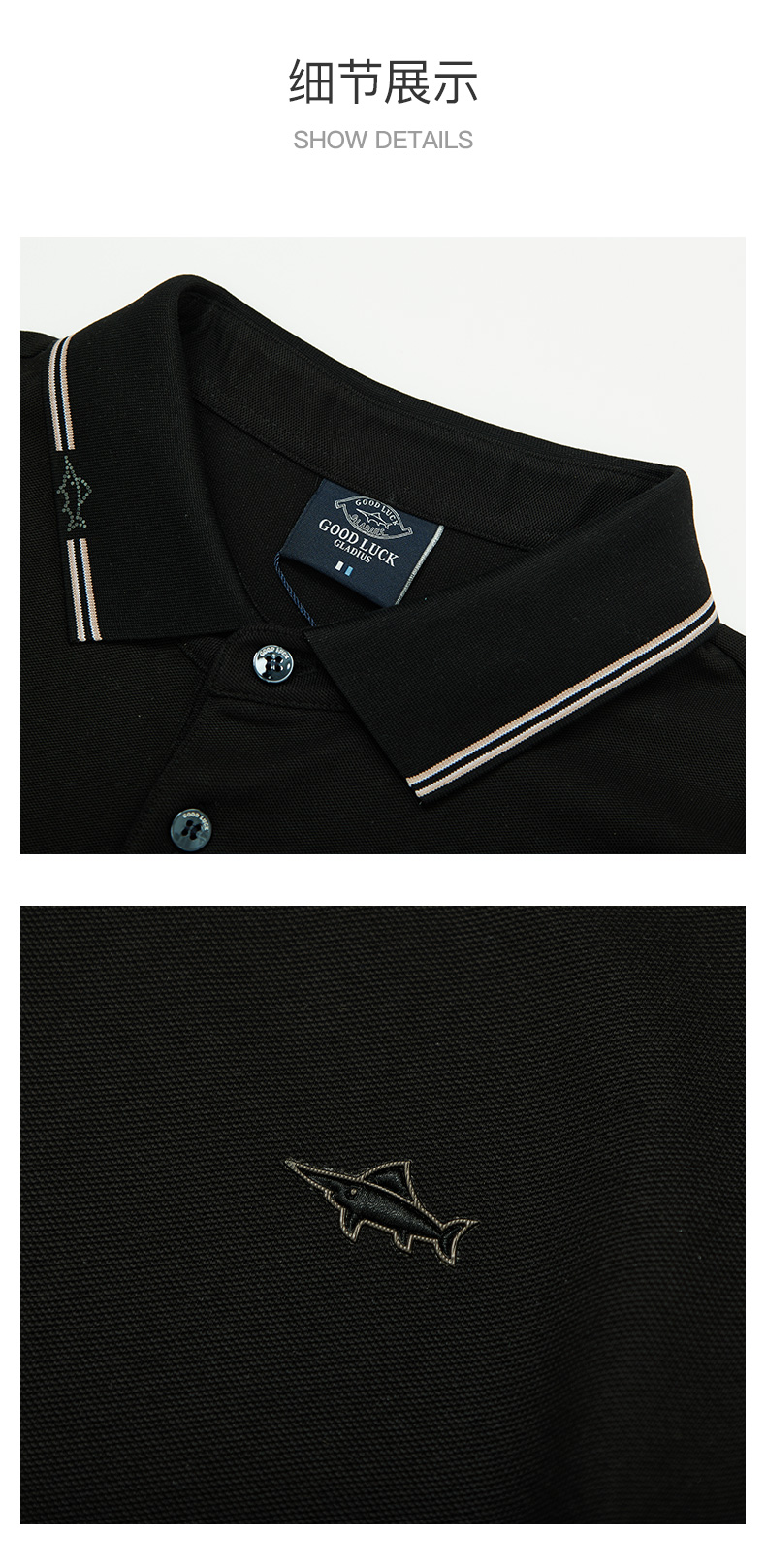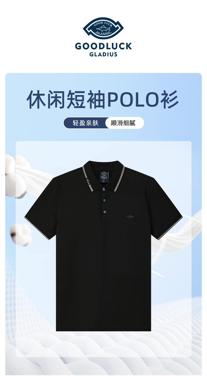 GOOD LUCK/德鲨弹力时尚亲肤柔软全身字母提花细腻精致短袖时尚休闲POLO衫LY23156