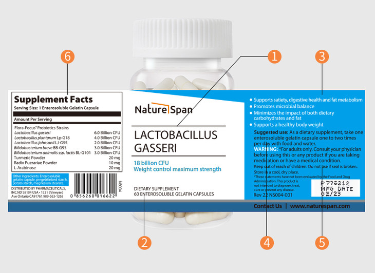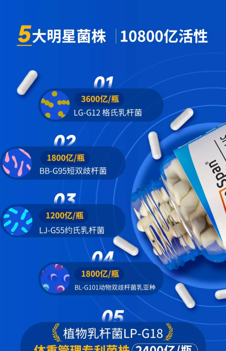 加氏乳杆菌体重控制饱腹感植物乳杆菌瘦素益生菌60粒NatureSpan倍能适