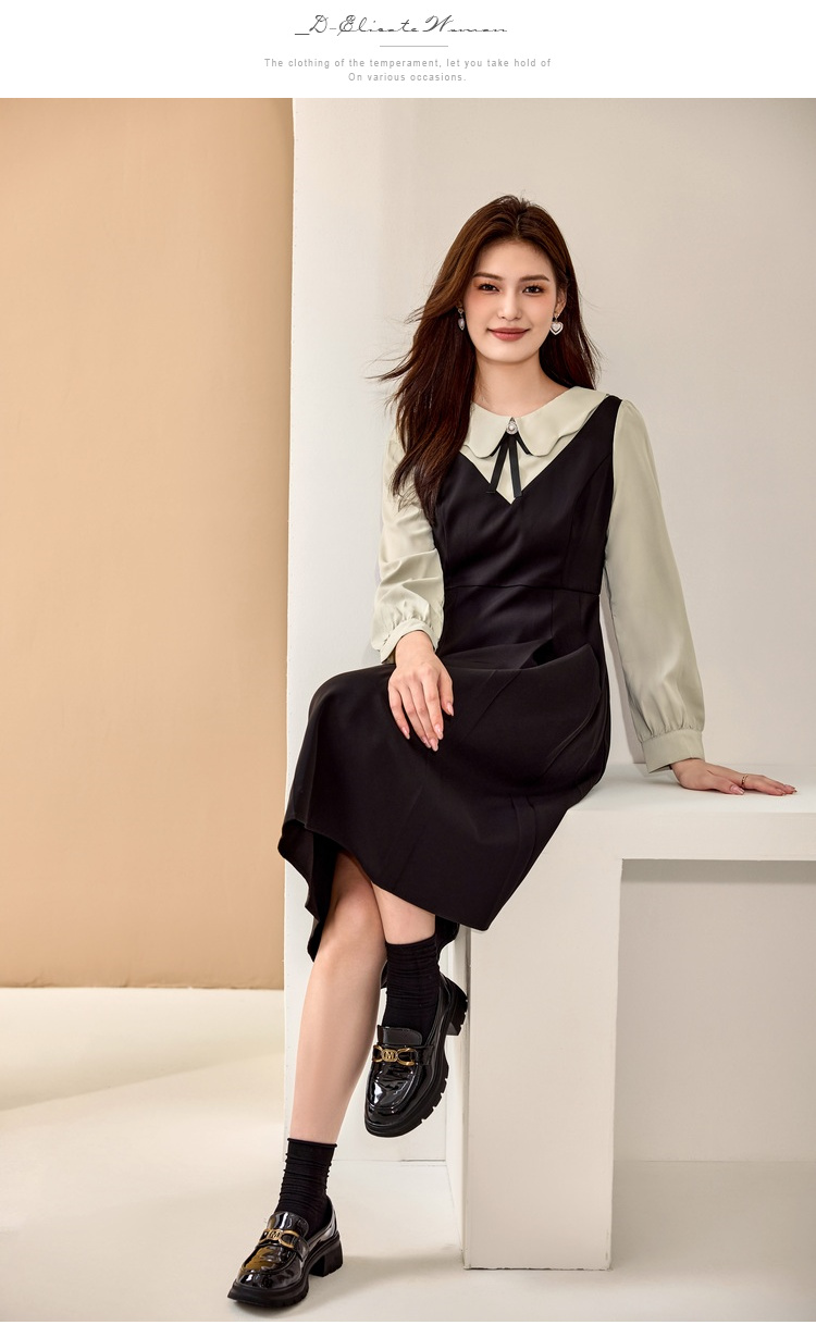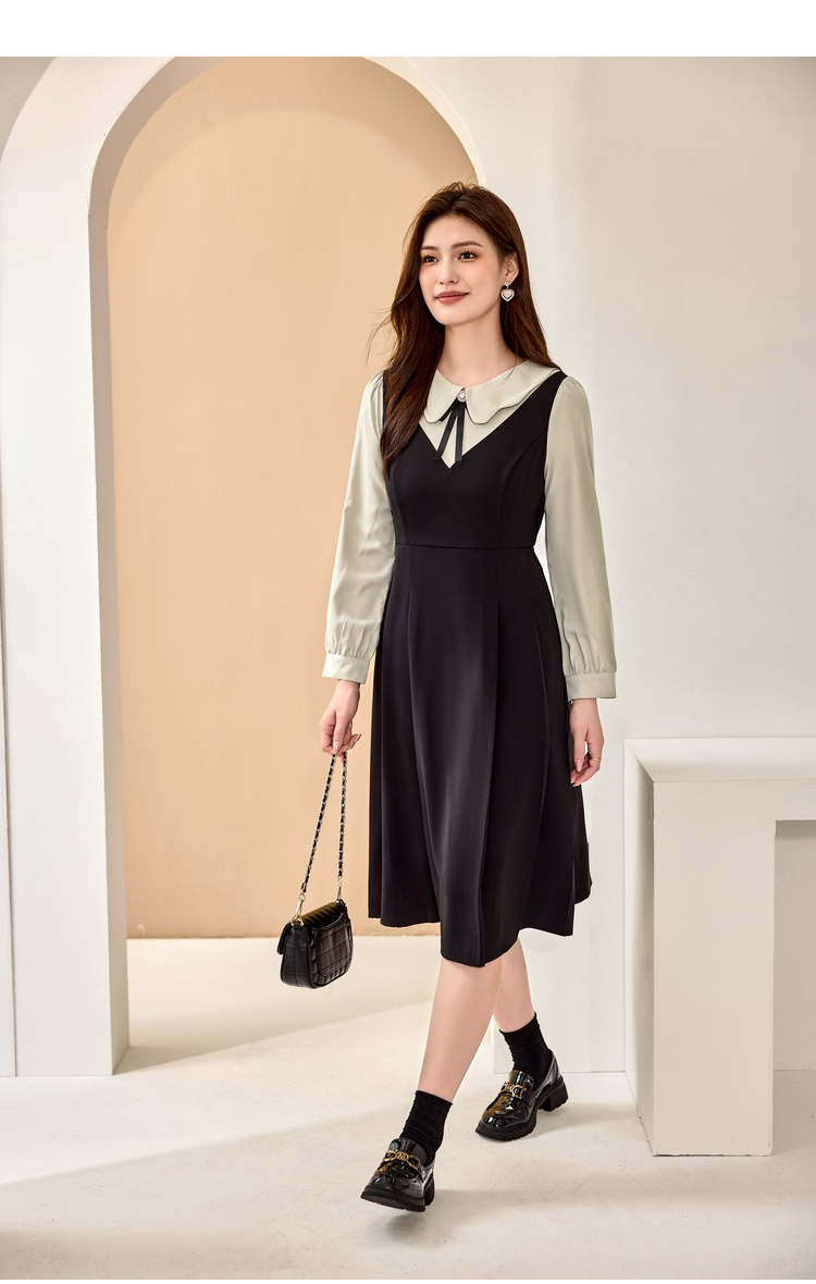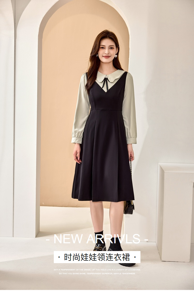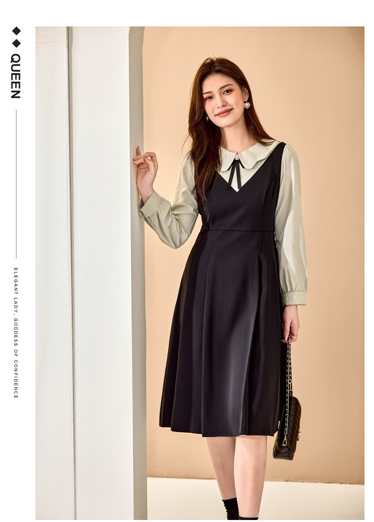 8/2奢姿大码女装2024秋季减龄娃娃领裙子胖妹妹拼接假两件时尚连衣裙9943826640
