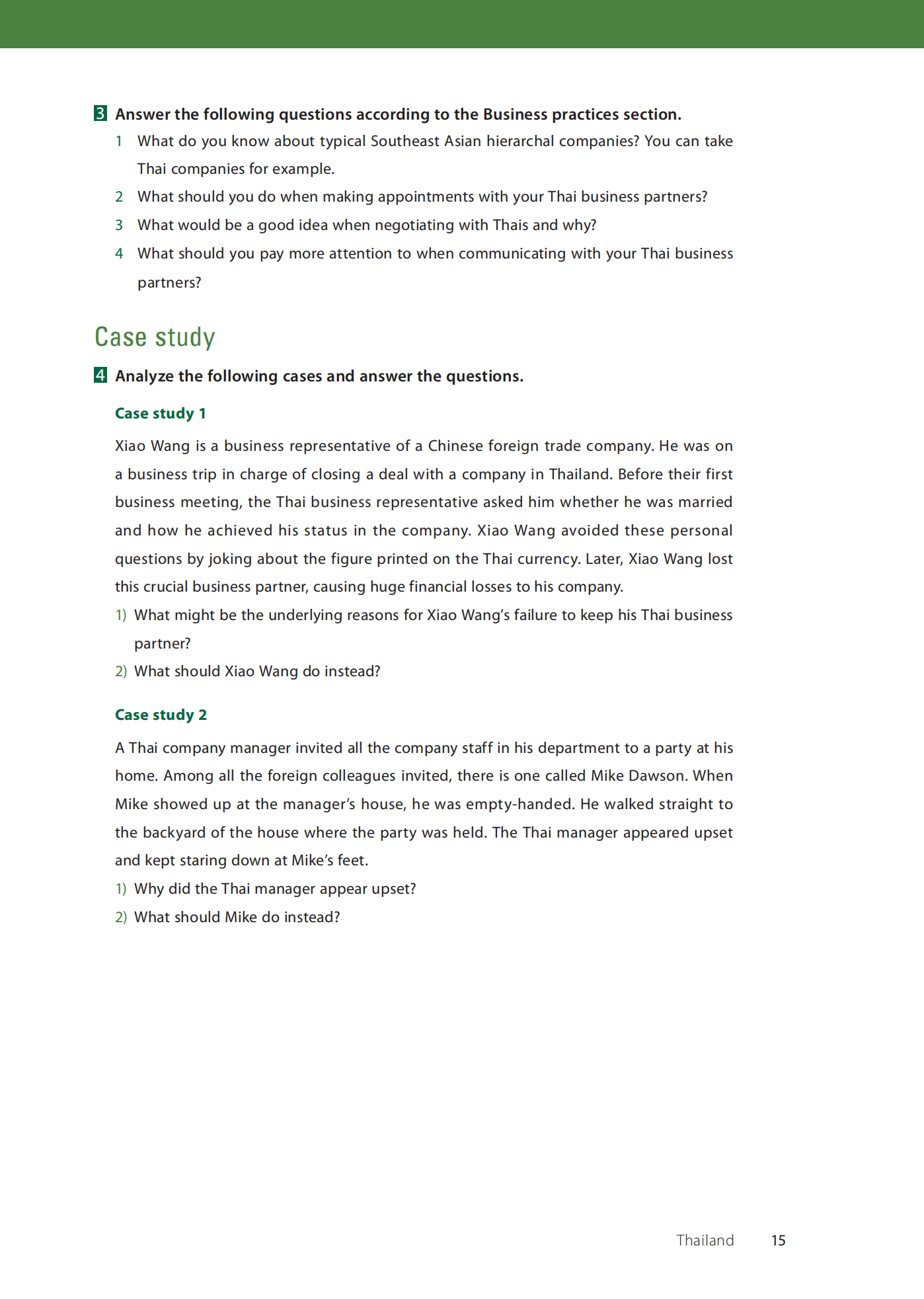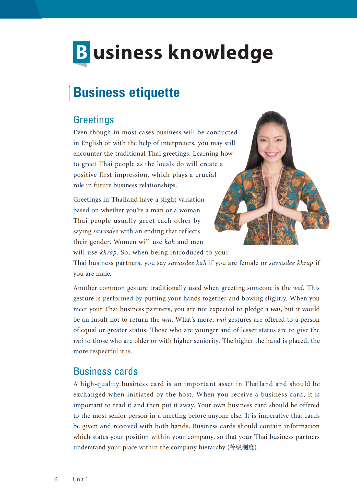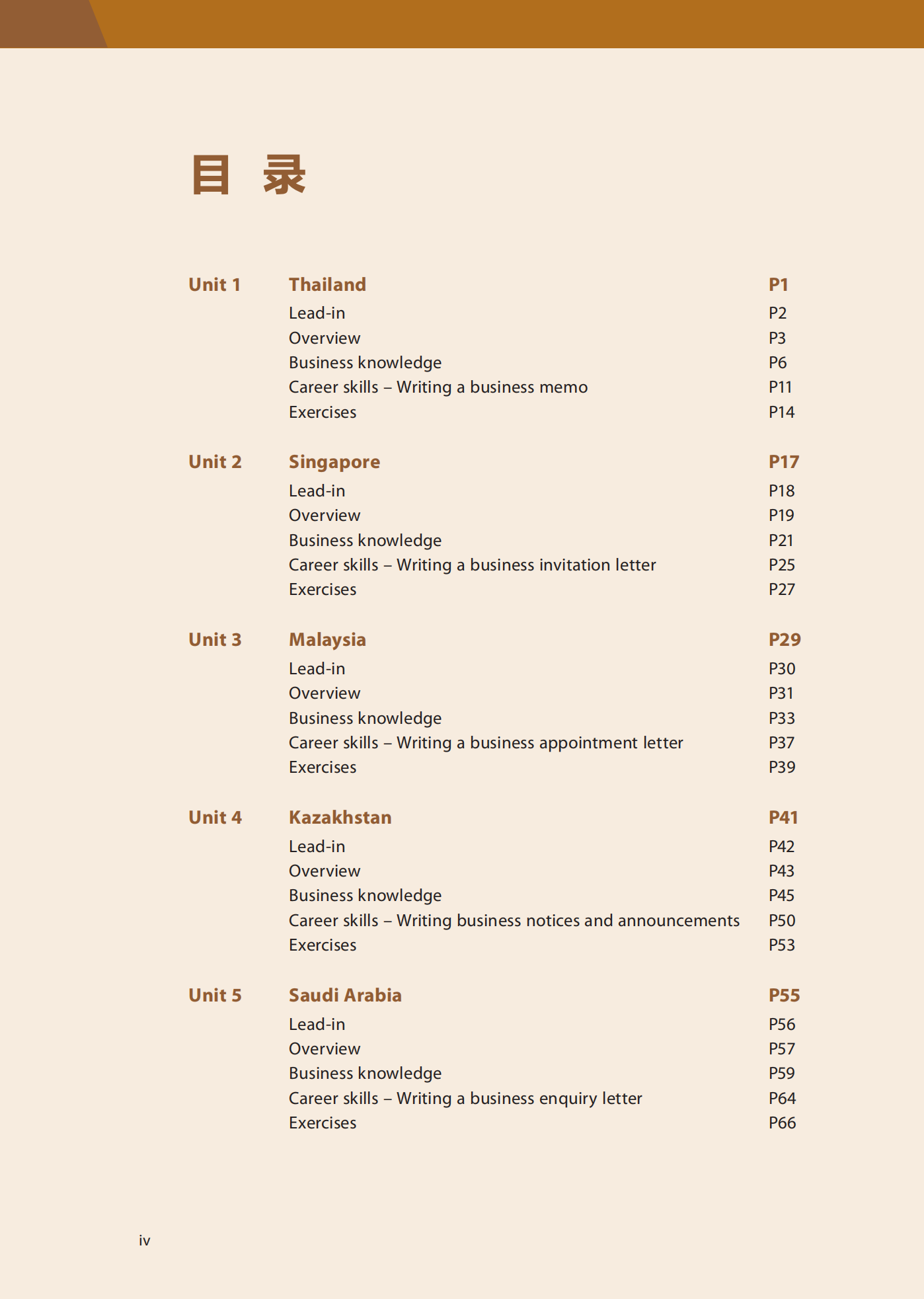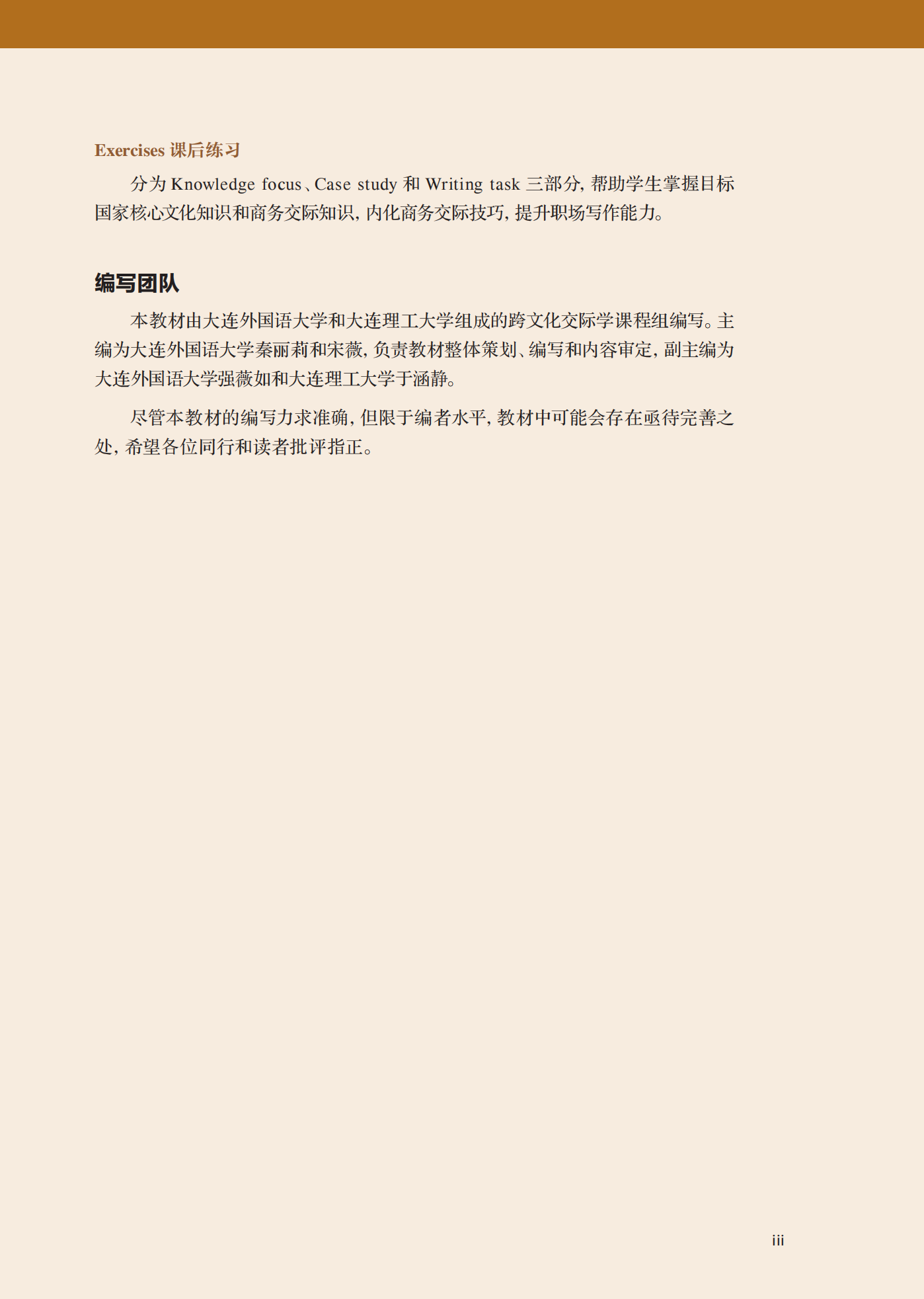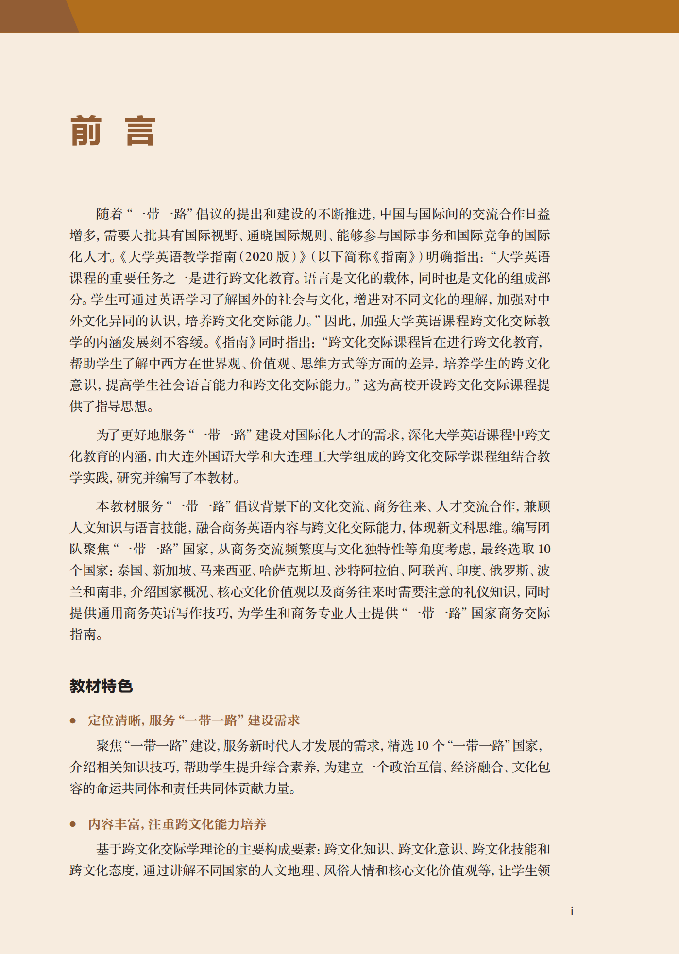 本教材聚焦“一带一路”国家跨文化交流与商务往来合作,兼顾人文知识与语言技能,融合商务英语知识与跨文化交际能力培养。教材精选10个“一带一路”沿线国家,介绍国家概况、核心文化价值观以及商务往来时需要注意的礼仪知识,同时提供通用商务英语写作技巧,为学生和商务专业人士提供“一带一路”国家商务交际指南。