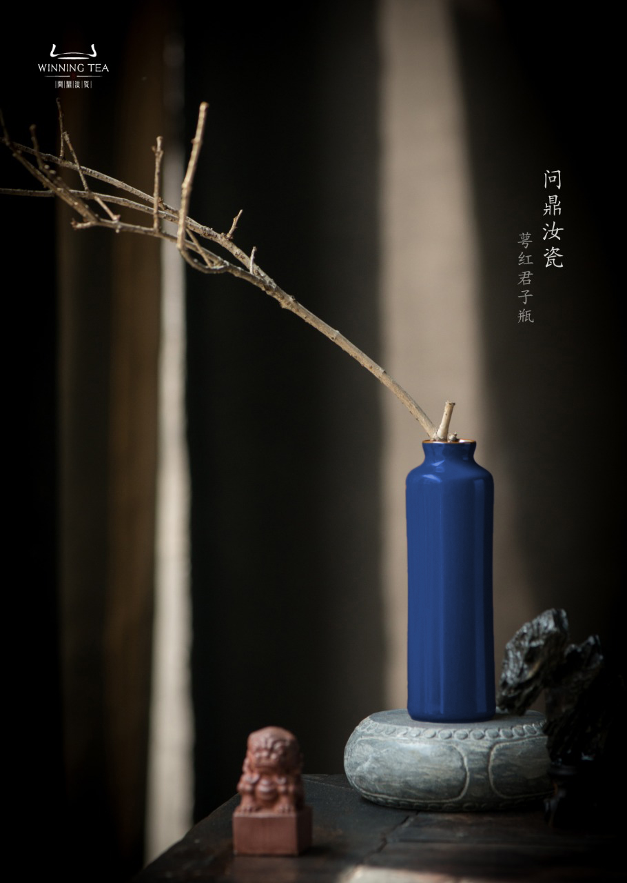 问鼎黛蓝君子瓶创意小号陶瓷花瓶插花器 中式复古桌面台面家居饰品摆件