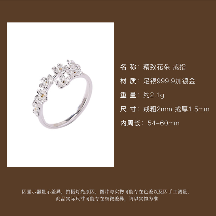 【百花飘雪】S999银足银镀金气质花朵戒指【CW-JZ06477】