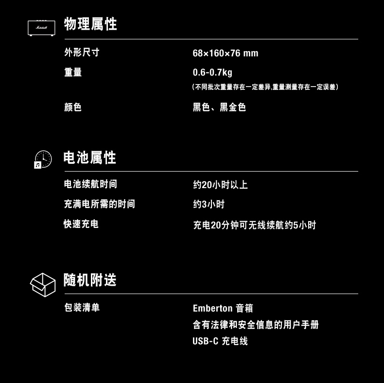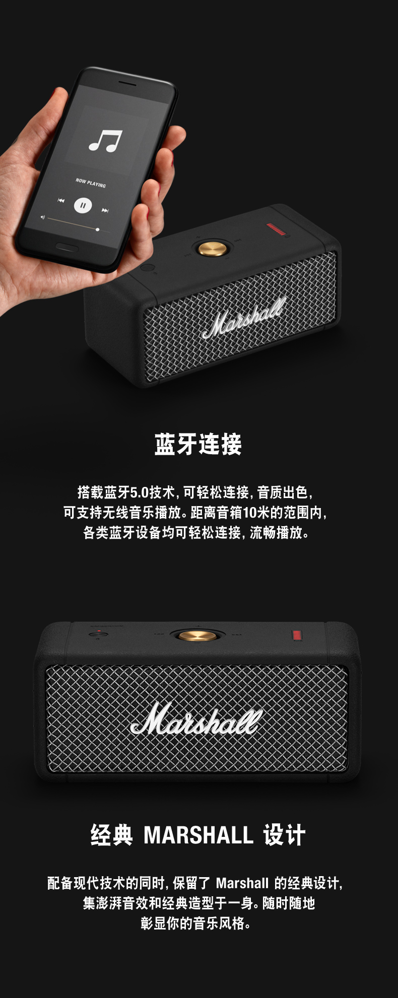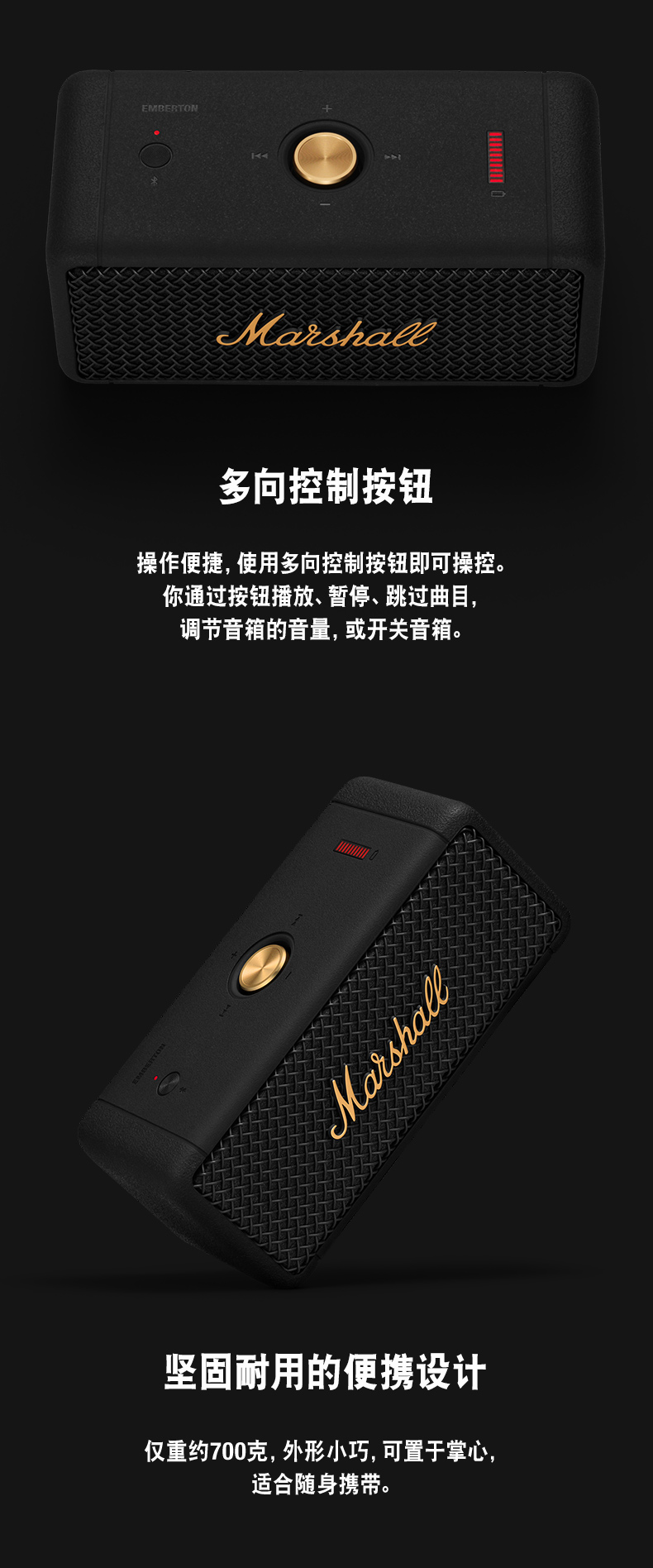 马歇尔Marshall 音箱 Emberton 黑色( 3C 版 )MHP-91908