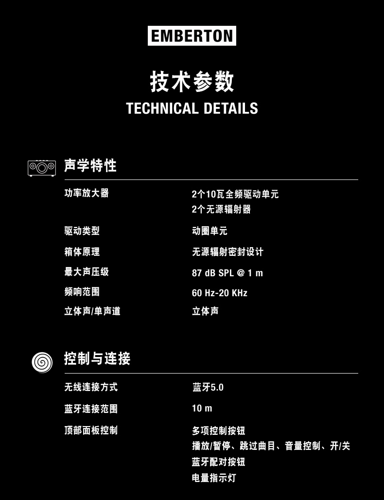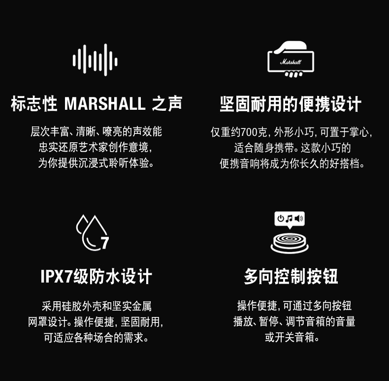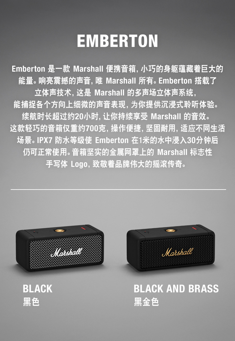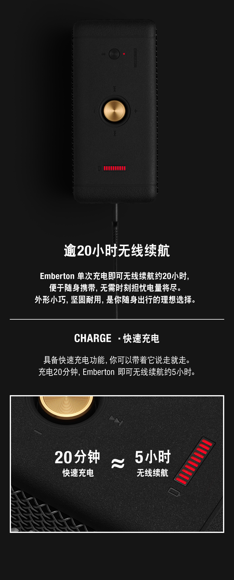 马歇尔Marshall 音箱 Emberton 黑色( 3C 版 )MHP-91908