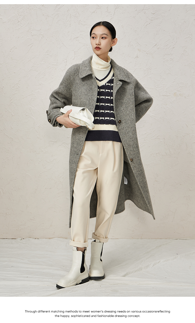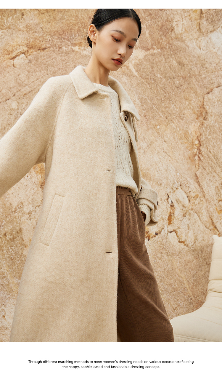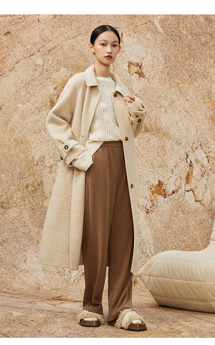 NUTS冬款高级感简约气质宽松翻领百搭手工呢料长外套女343152036A