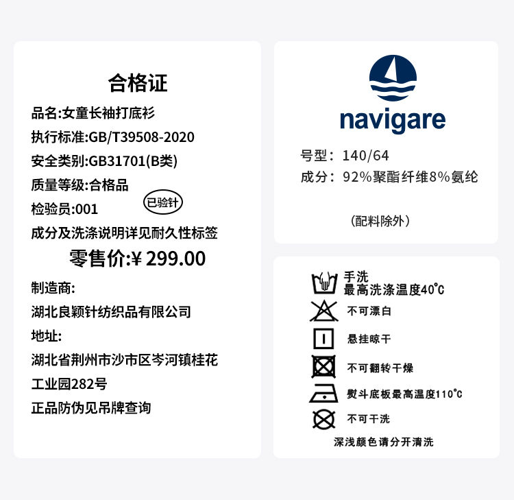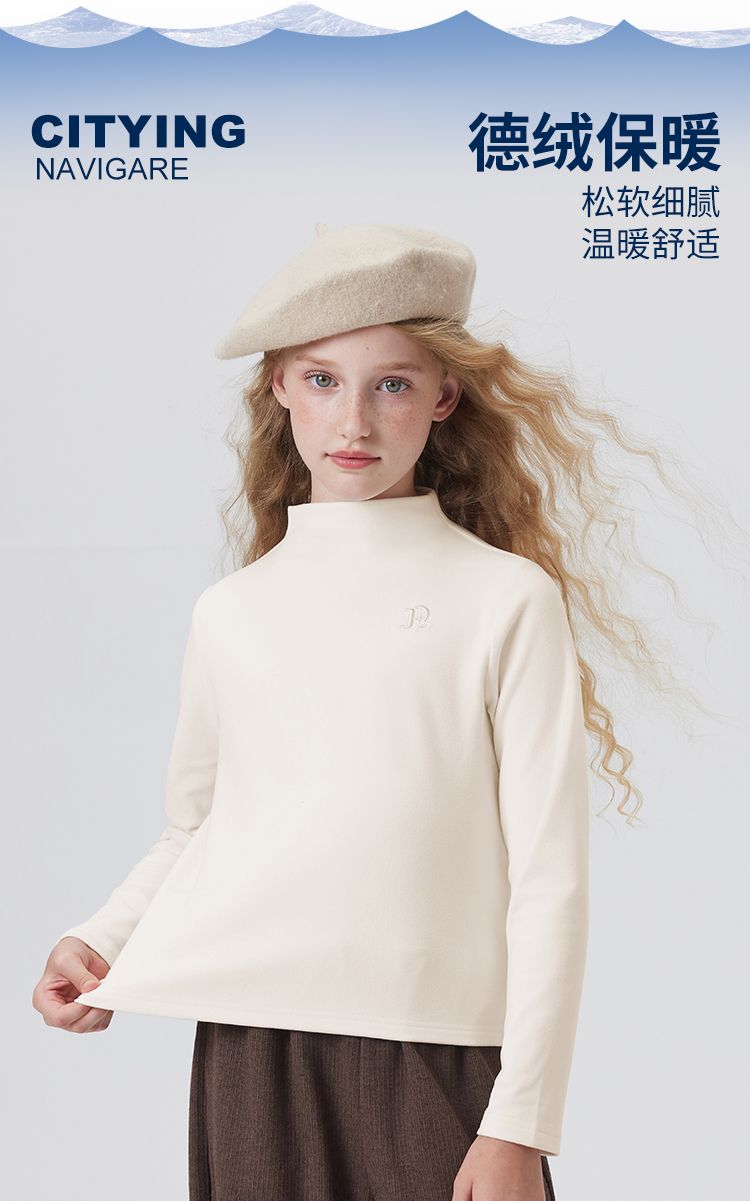 【纳维凯尔】【120-165】意大利小帆船女童秋冬款双面磨毛打底衫长袖T恤