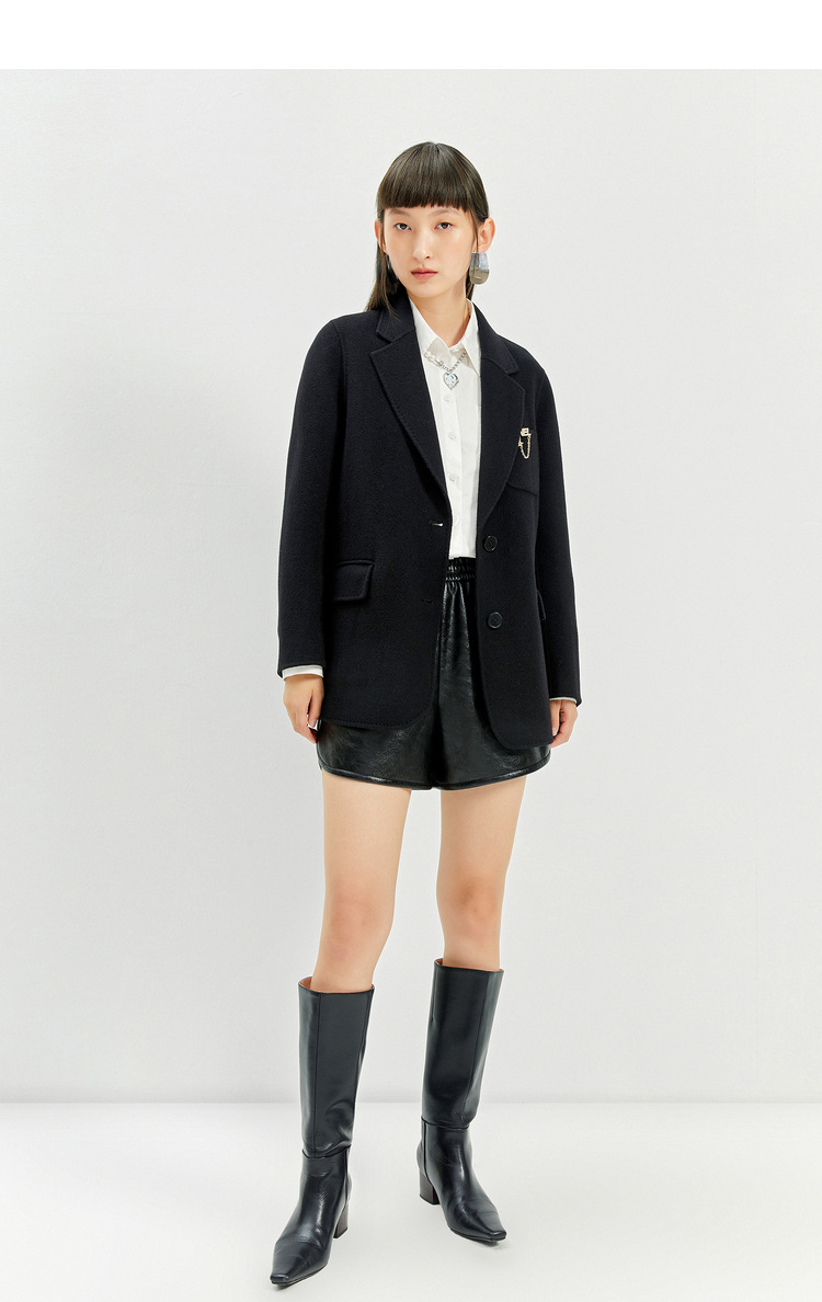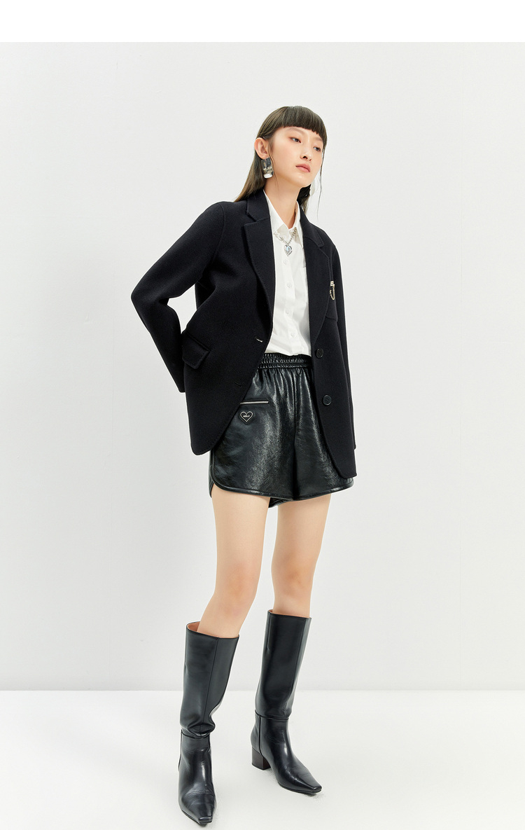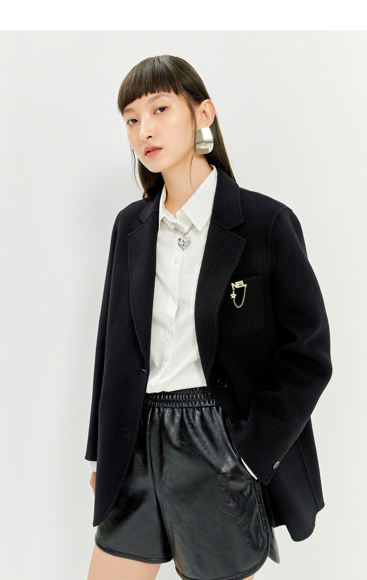 NEELLY纳俪商场同款春季新款针织衫女黑色显瘦短款开衫防晒上衣N23023A01115