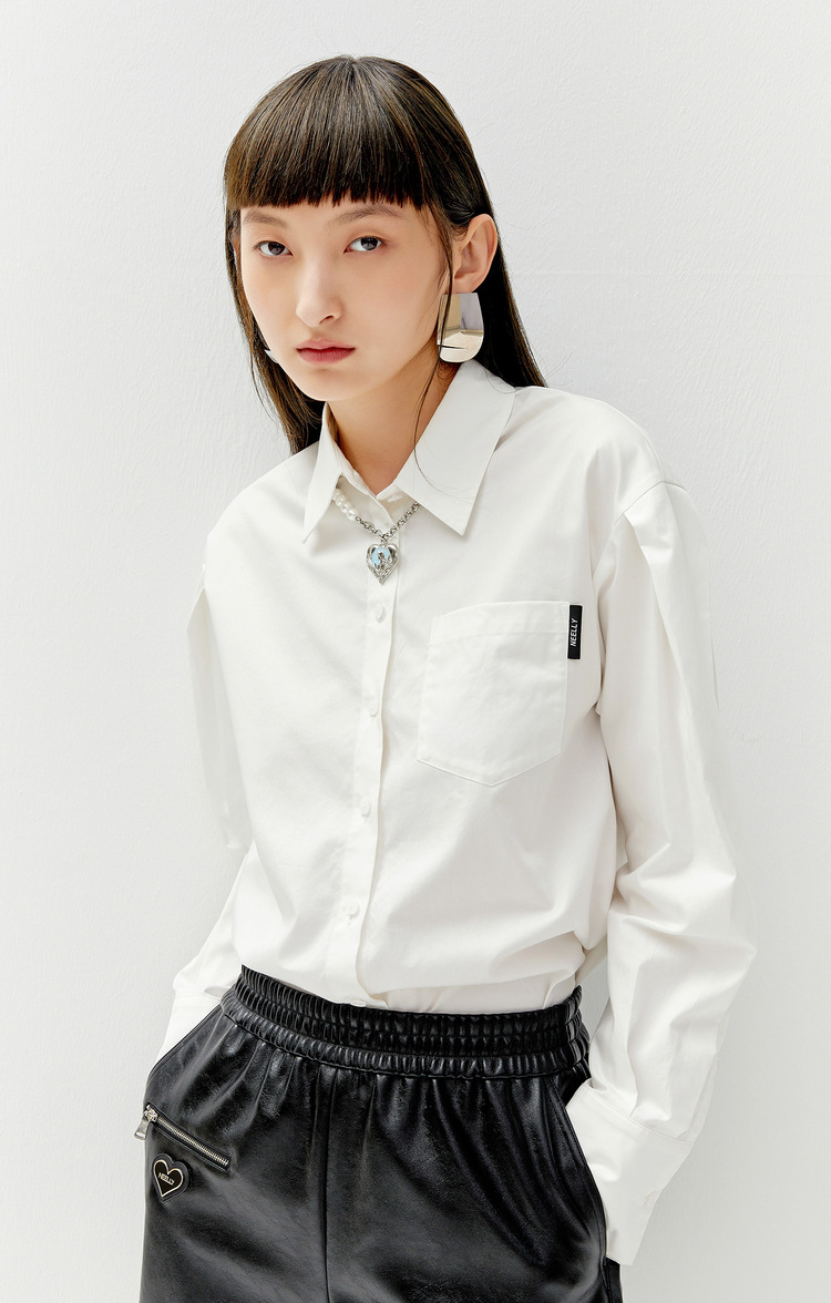 NEELLY纳俪衬衫女新款2021年白色设计感小众长袖时尚洋气上衣新款