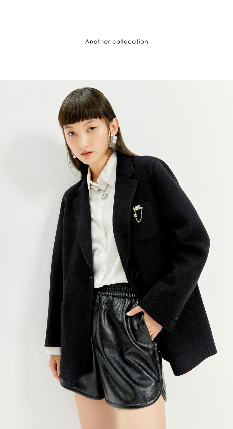NEELLY纳俪商场同款风衣女中长款小翻领单排扣外套收腰系带大衣 N23021F01061