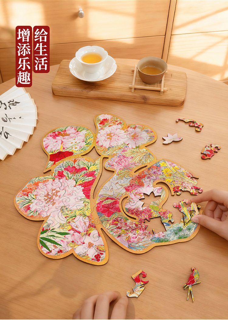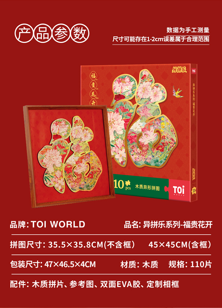 TOI图益拼图成人版木质异形diy玩具吉祥福字装饰挂画带框福贵花开