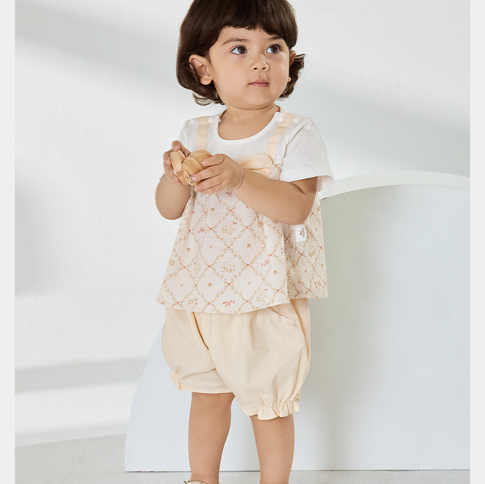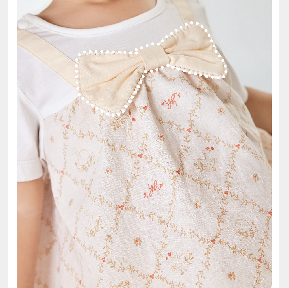 英氏婴儿衣服夏季可爱女童套装短袖透气夏季上衣裤子YRABJ2R009A