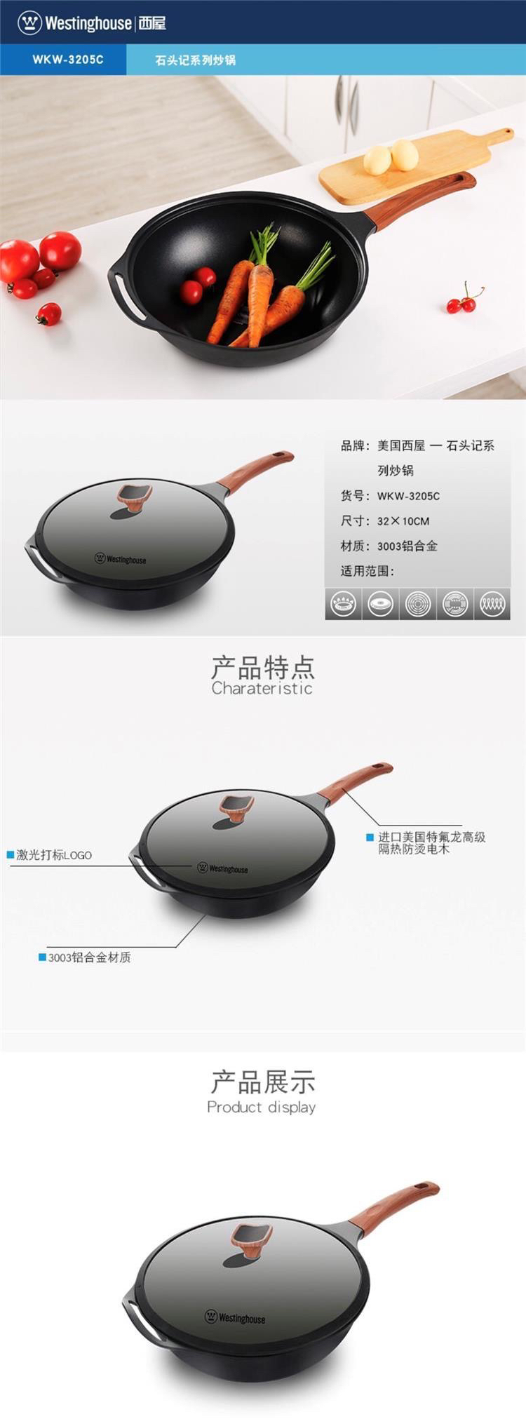 西屋石头记系列家用铝合金不粘涂层平底煎炒锅WKW-3205C