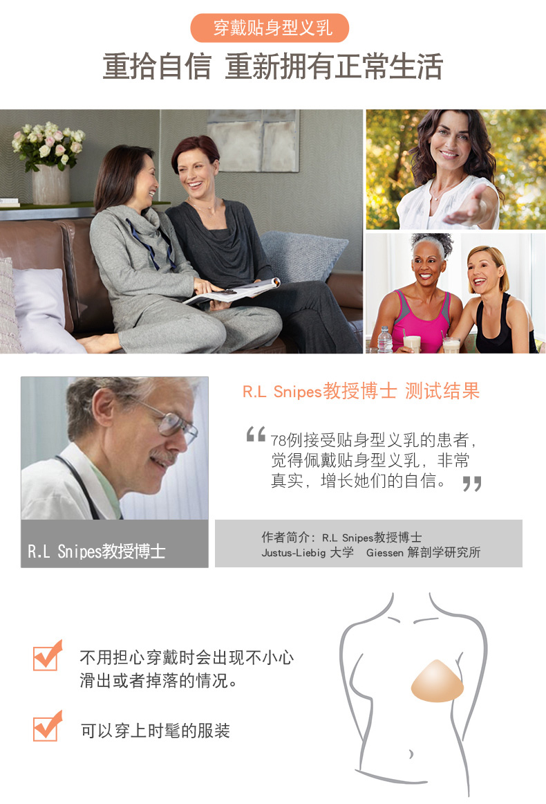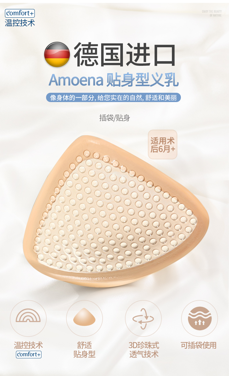【优惠详情咨询客服】德国爱蒙娜 贴身型硅胶义乳腺癌手术后专用假胸乳房 贴身黏贴型(382两用款) 送文胸罩