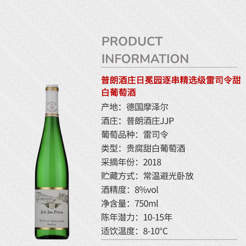 普朗酒庄日冕园雷司令逐串精选甜白葡萄酒2018年