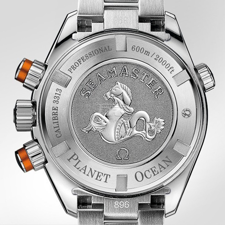镜面材质 | 蓝宝石水晶玻璃 | 表盘 | 精钢表壳,单向旋转表圈 黑漆表盘,日期显示 计时码表 夜光 天文台认证,表背于波纹背景之上浮雕欧米茄海马徽章图案。 密底 |