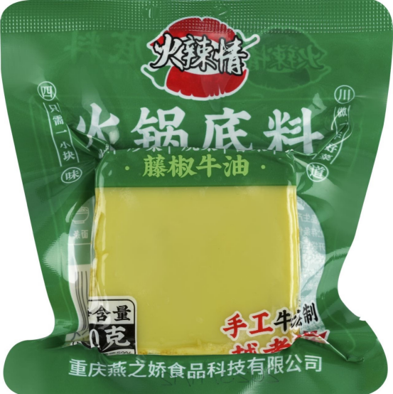来自重庆二十多年经营川渝原生态食材的是食品工厂--重庆市燕之娇食品有限公司,公司始创于1998年,坐落于重庆市合川区思居生态创业园,建筑面积5000平方米。 从2018年起公司依托自身拥有的长期经营原生态食材优势,聚焦品类,专注于巴蜀火锅底料系列产品的研发、生产与销售。 已研发并生产、销售“蜀香辣”、“渝麻辣”、“厨艺大咖”火锅底料专利产品,与全国大型商超如北京物美超市、家乐福超市等都有密切合作,产品畅销于中国各大超市与专业市场。