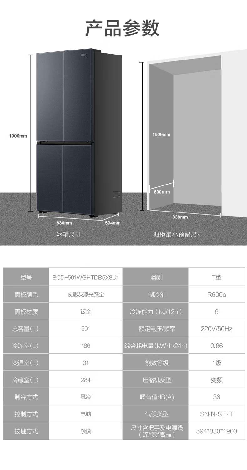 海尔(Haier)冰箱 BCD-501WGHTDB5X8U1