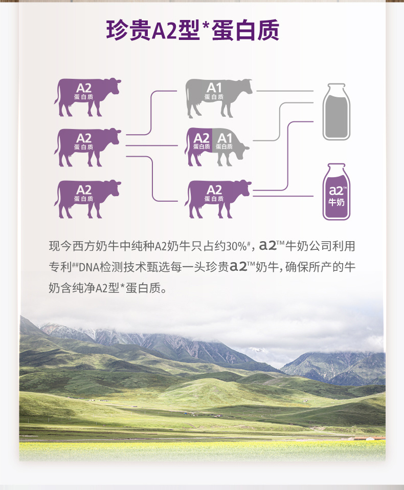 由其所产的牛奶只含100%纯净A2β-酪蛋白