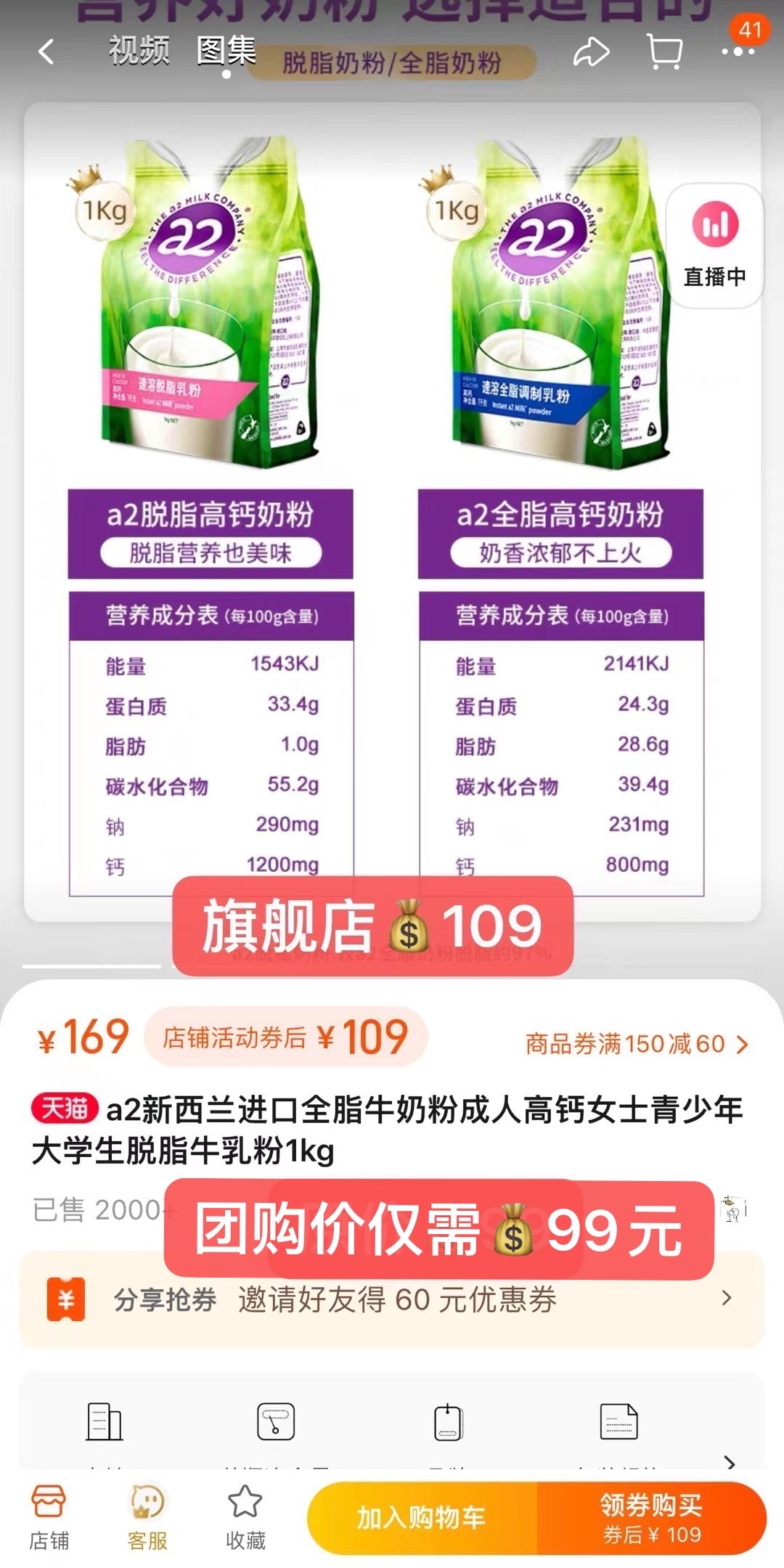 全新买送🎁【品牌直发】独家首发!澳洲进口a2成人全脂/脱脂奶粉1kg!奶粉中的“爱马仕”! ✅️澳洲销量NO.1牛奶品牌,适合3岁以上全家