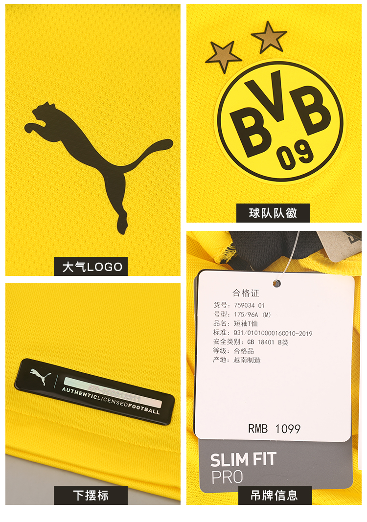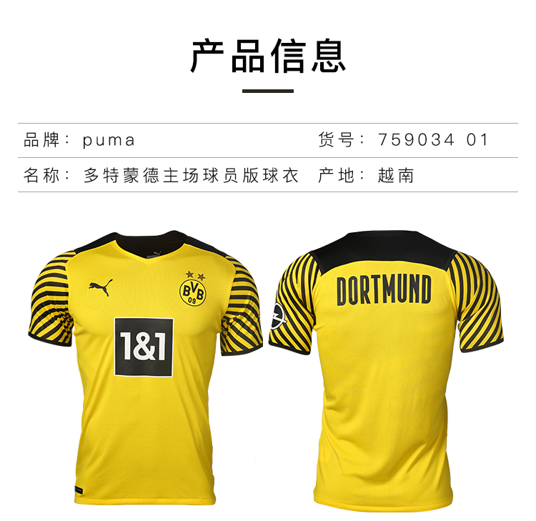 PUMA/彪马2021赛季多特蒙德主场球员版球衣短袖男759034 01