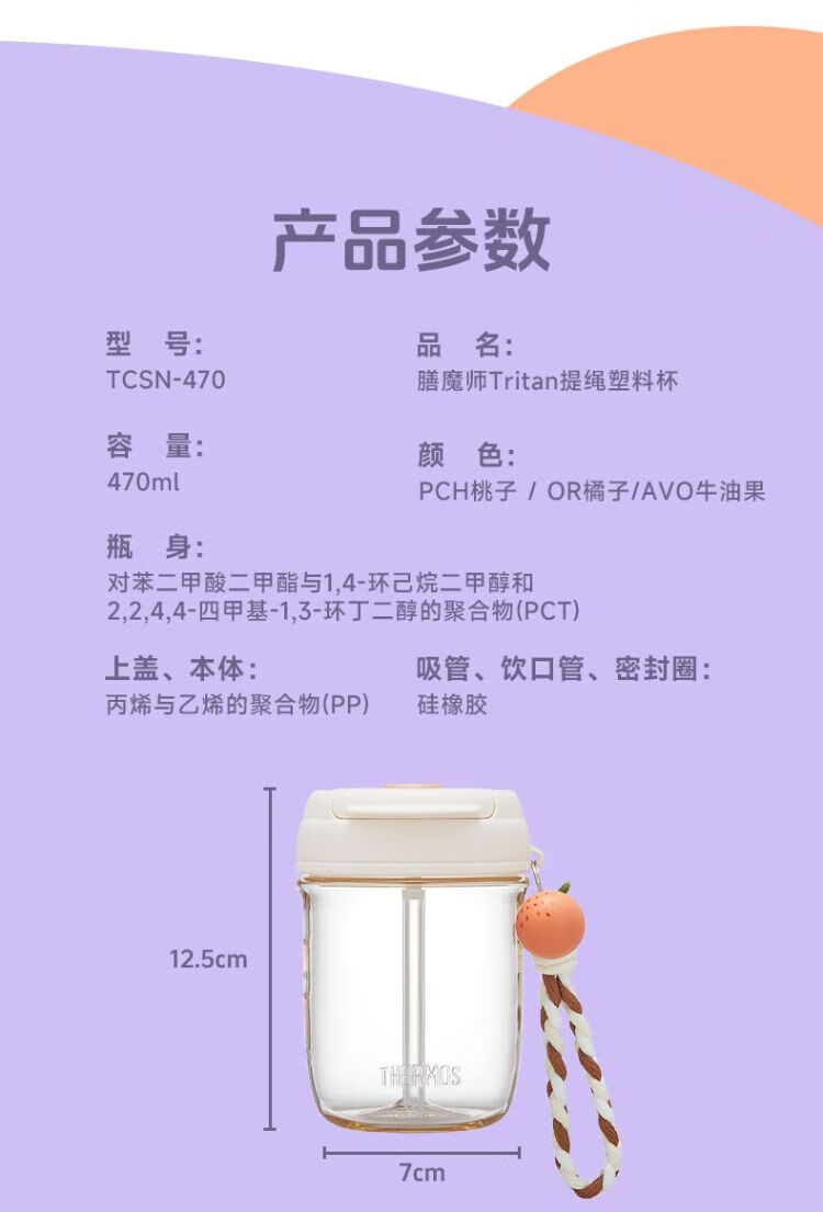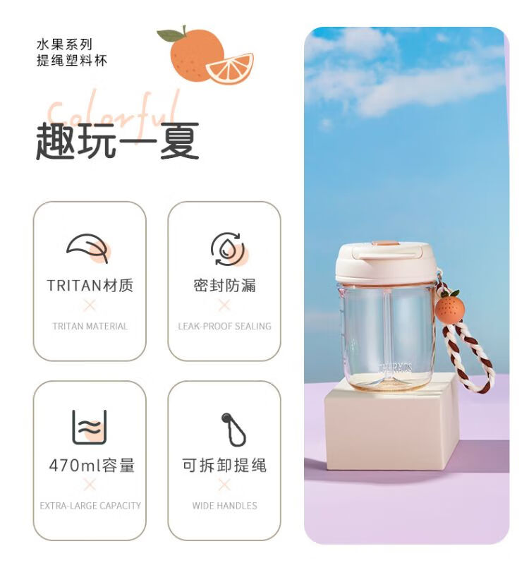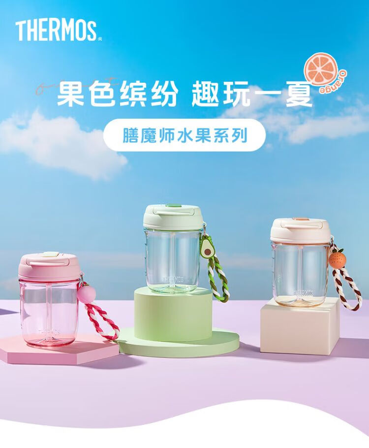 膳魔师 Tritan提绳塑料杯随行杯TCSN-470 桃子/牛油果/橙子(型号备注)