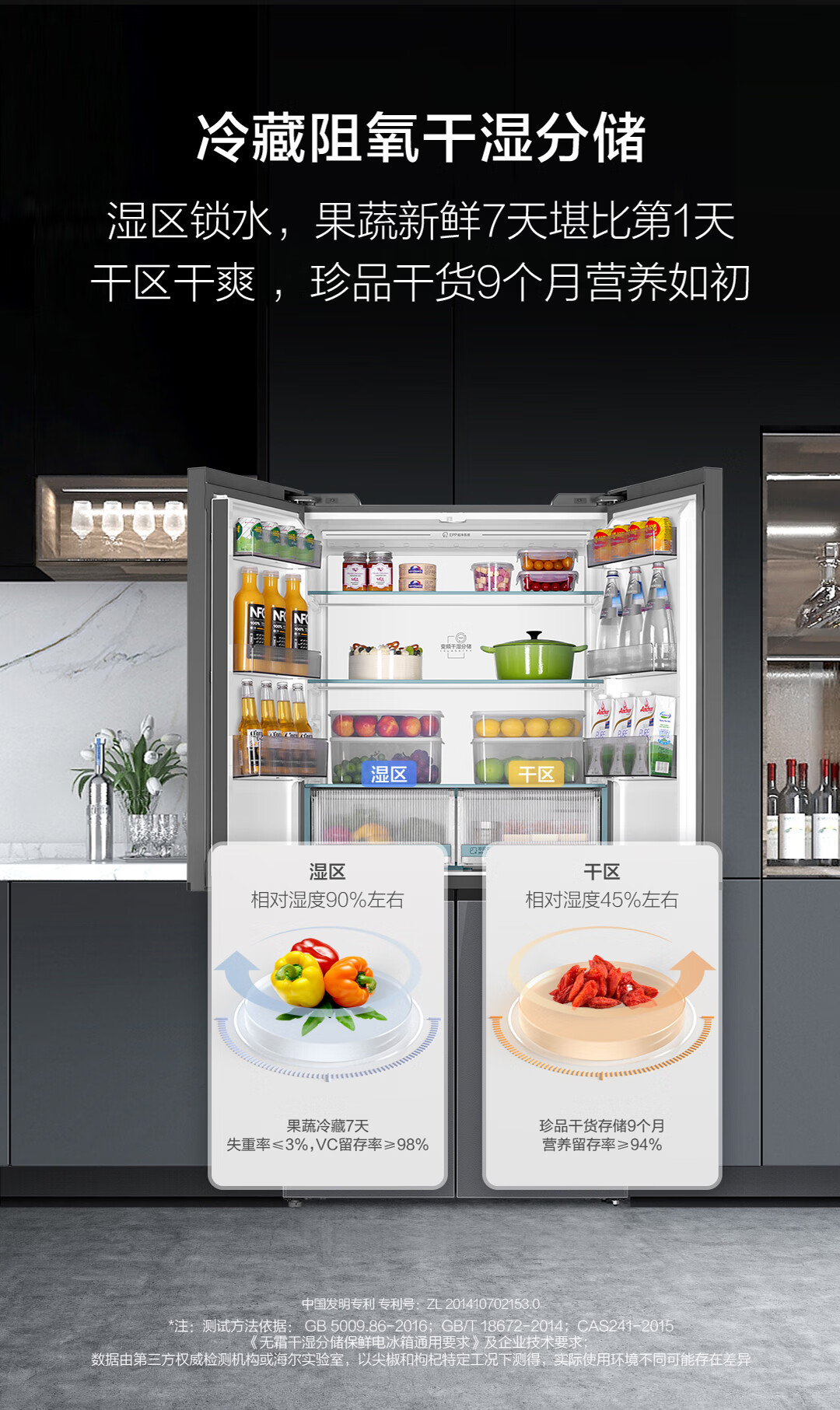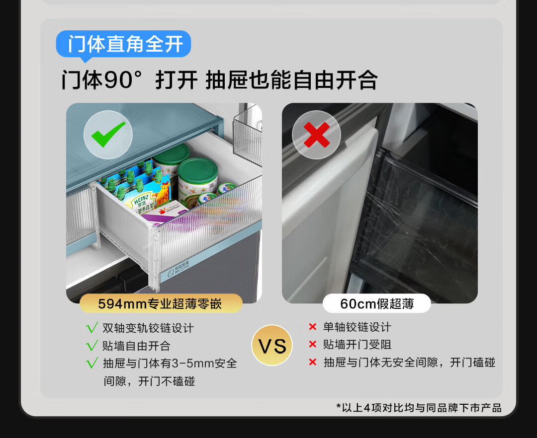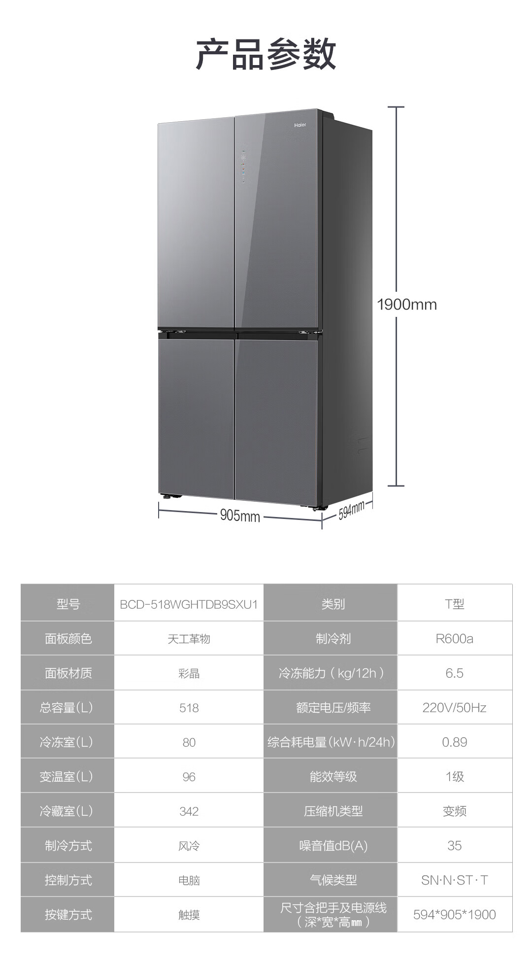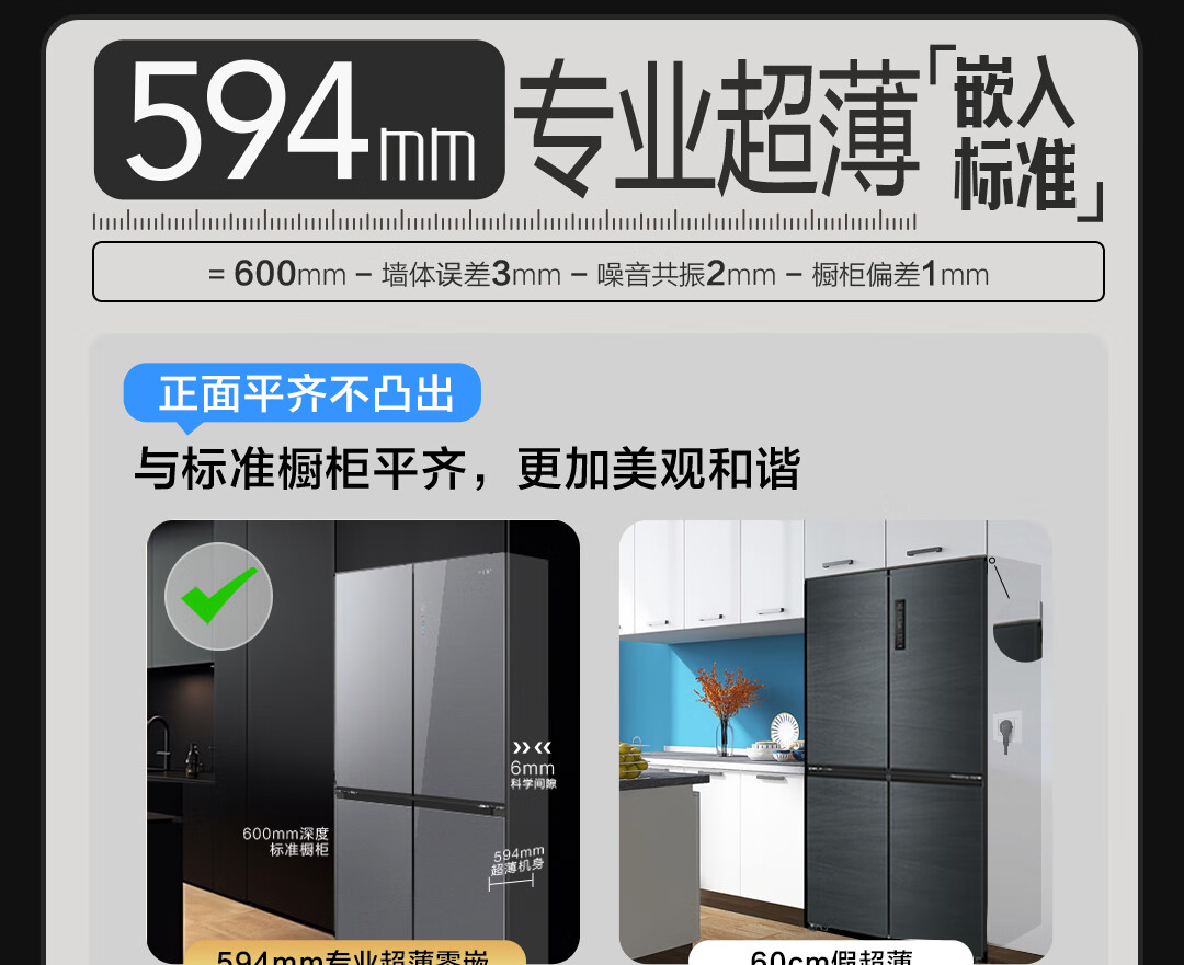 海尔(Haier)518升大容量594mm专业超薄零嵌一级双变频阻氧干湿分储星蕴银彩晶外观冰箱BCD-518WGHTDB9SXU1