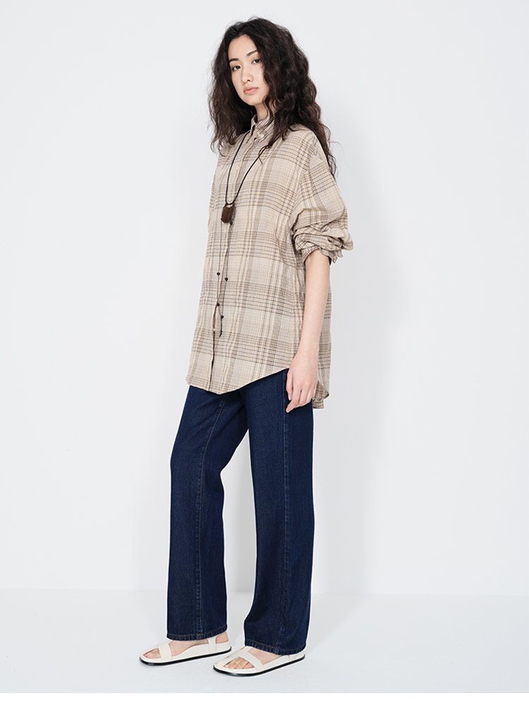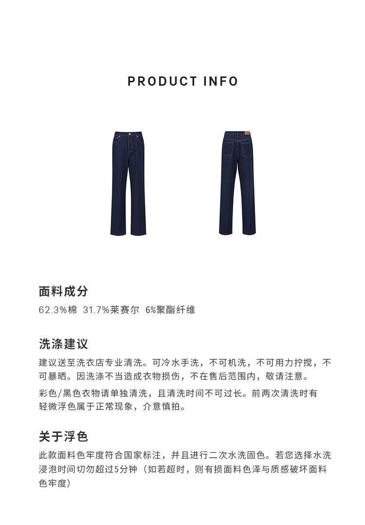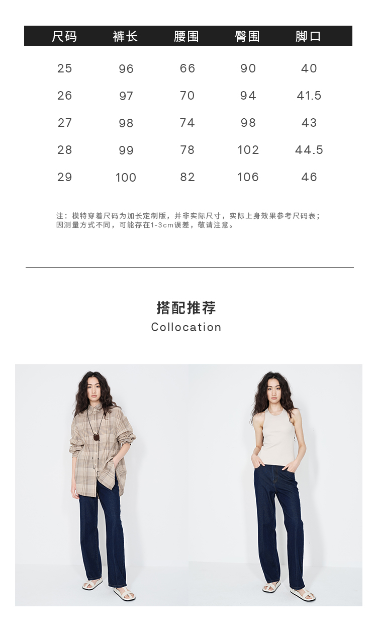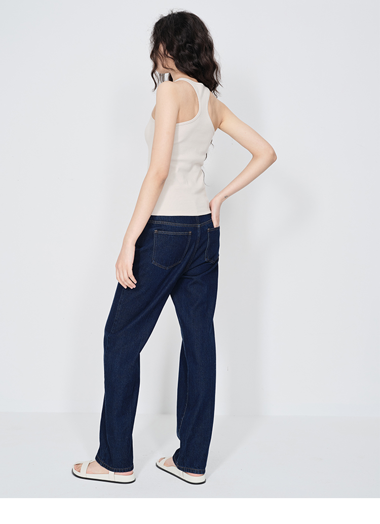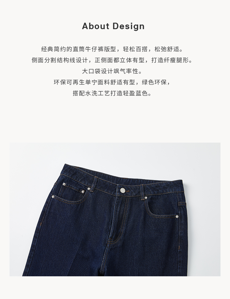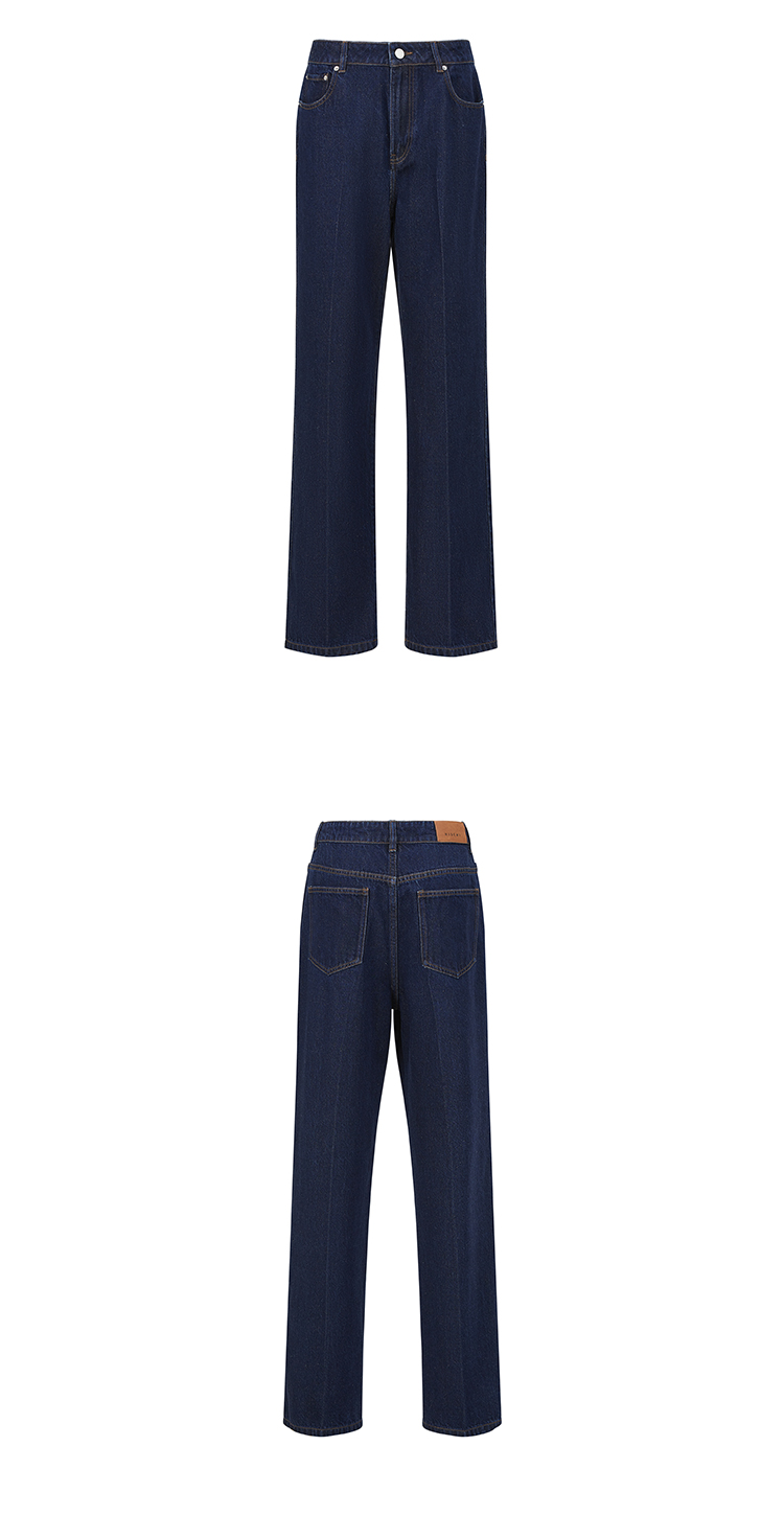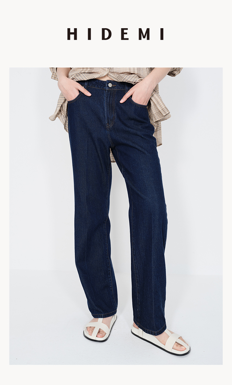 HIDEMI 经典牛仔系列深藏蓝牛仔蓝复古中腰直筒铅笔牛仔裤