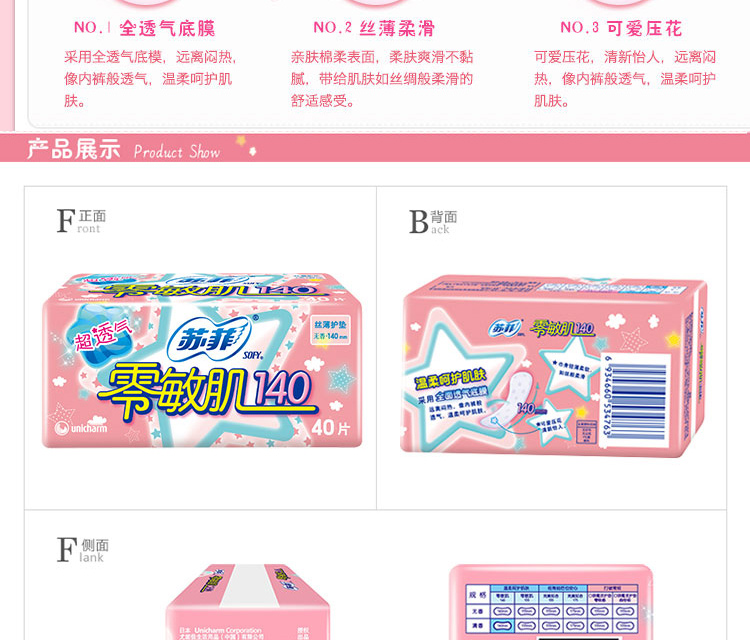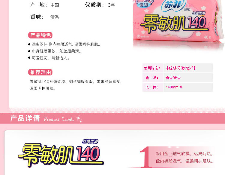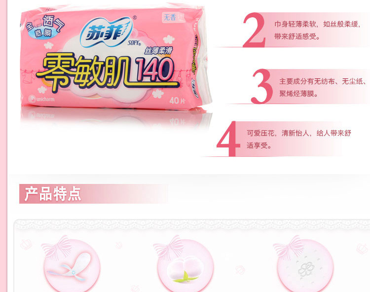 苏菲 丝薄柔滑无香型护垫140mm 40片/包