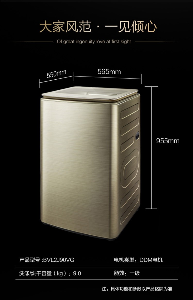 小天鹅(LittleSwan)(251663)9公斤波轮洗衣机全自动银离子杀菌一级能效节能 智能添加洗衣液 全景触控 变频直驱电机 BVL2J90VG