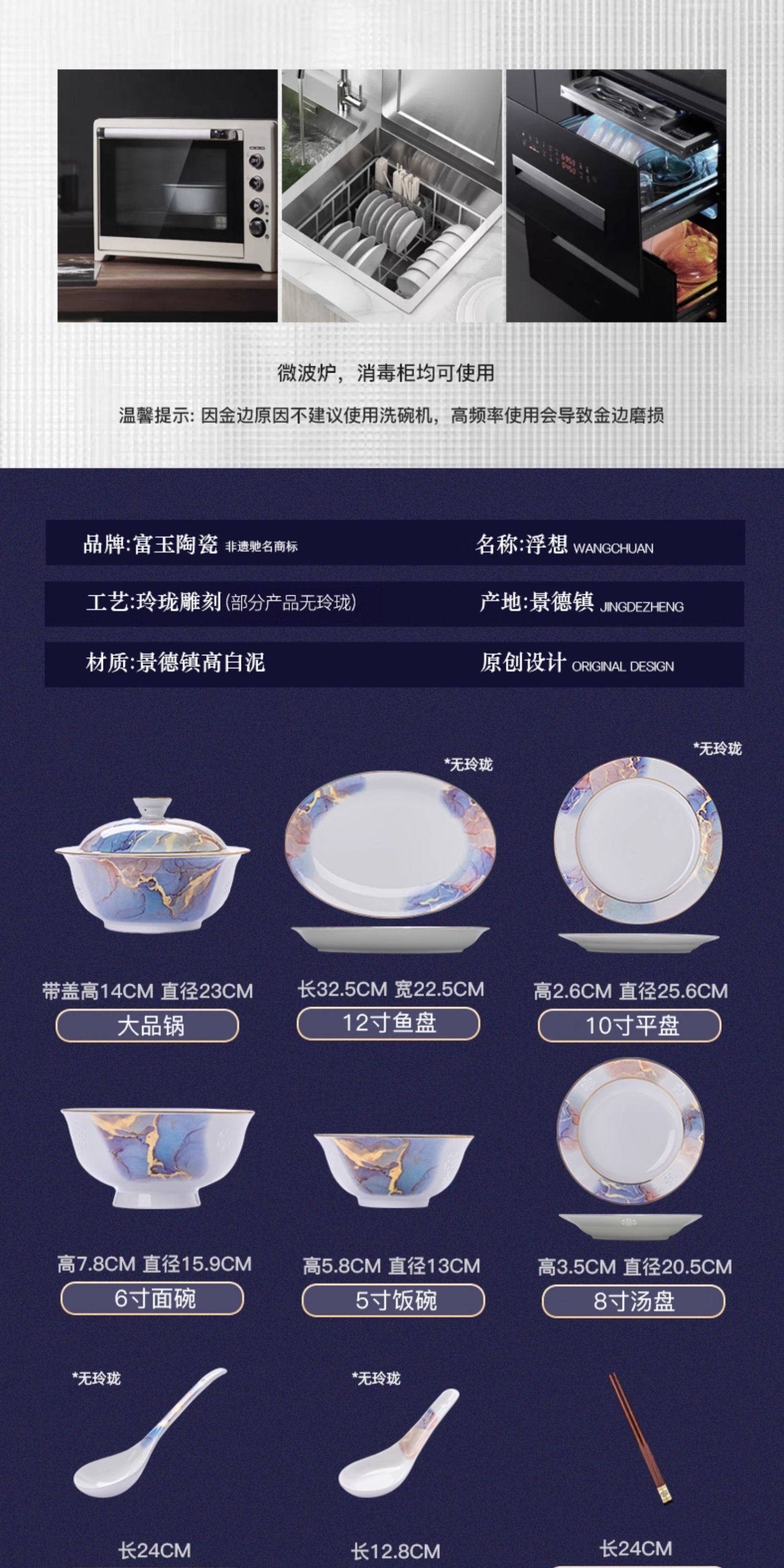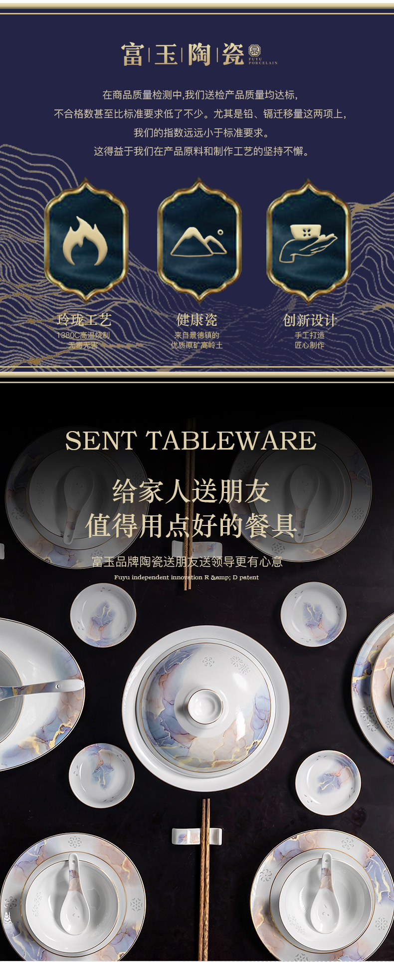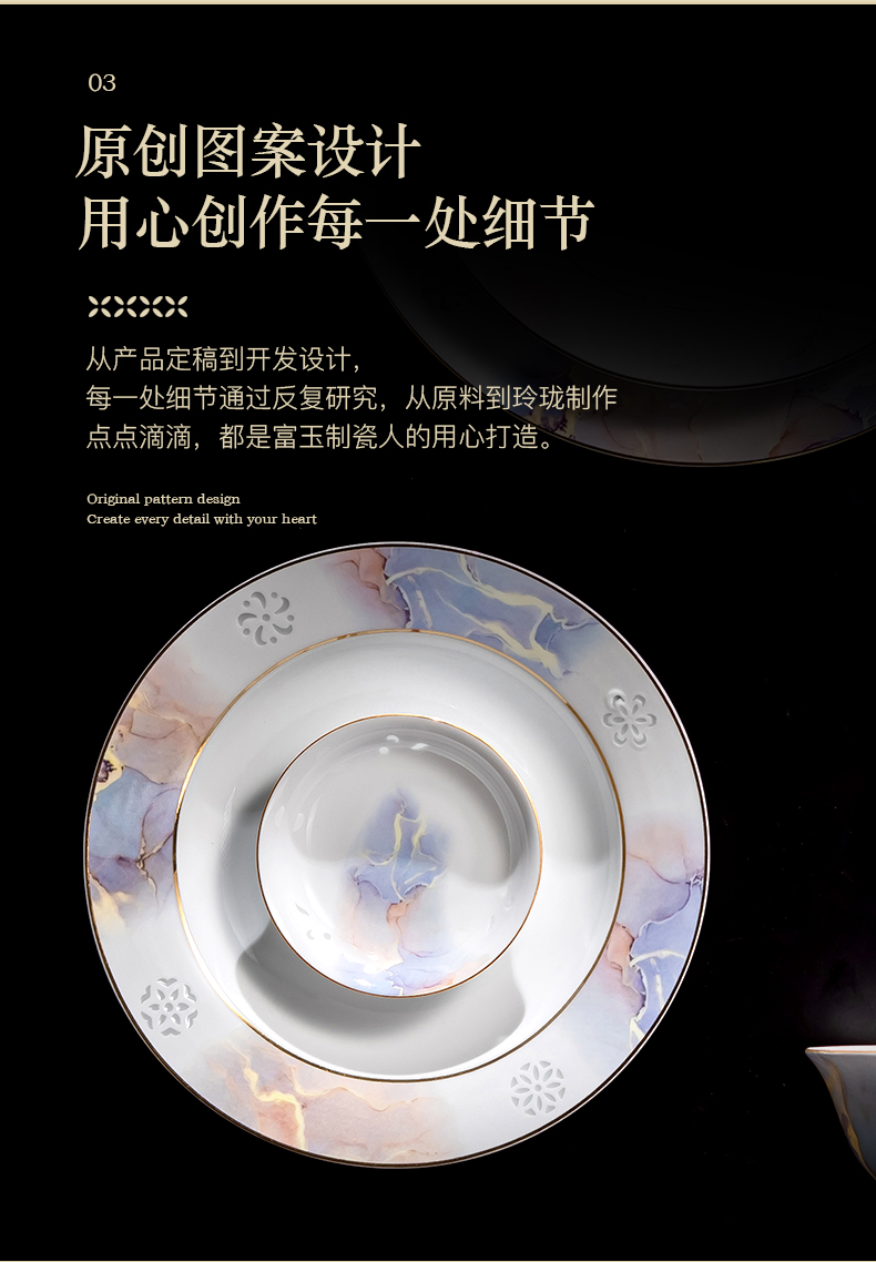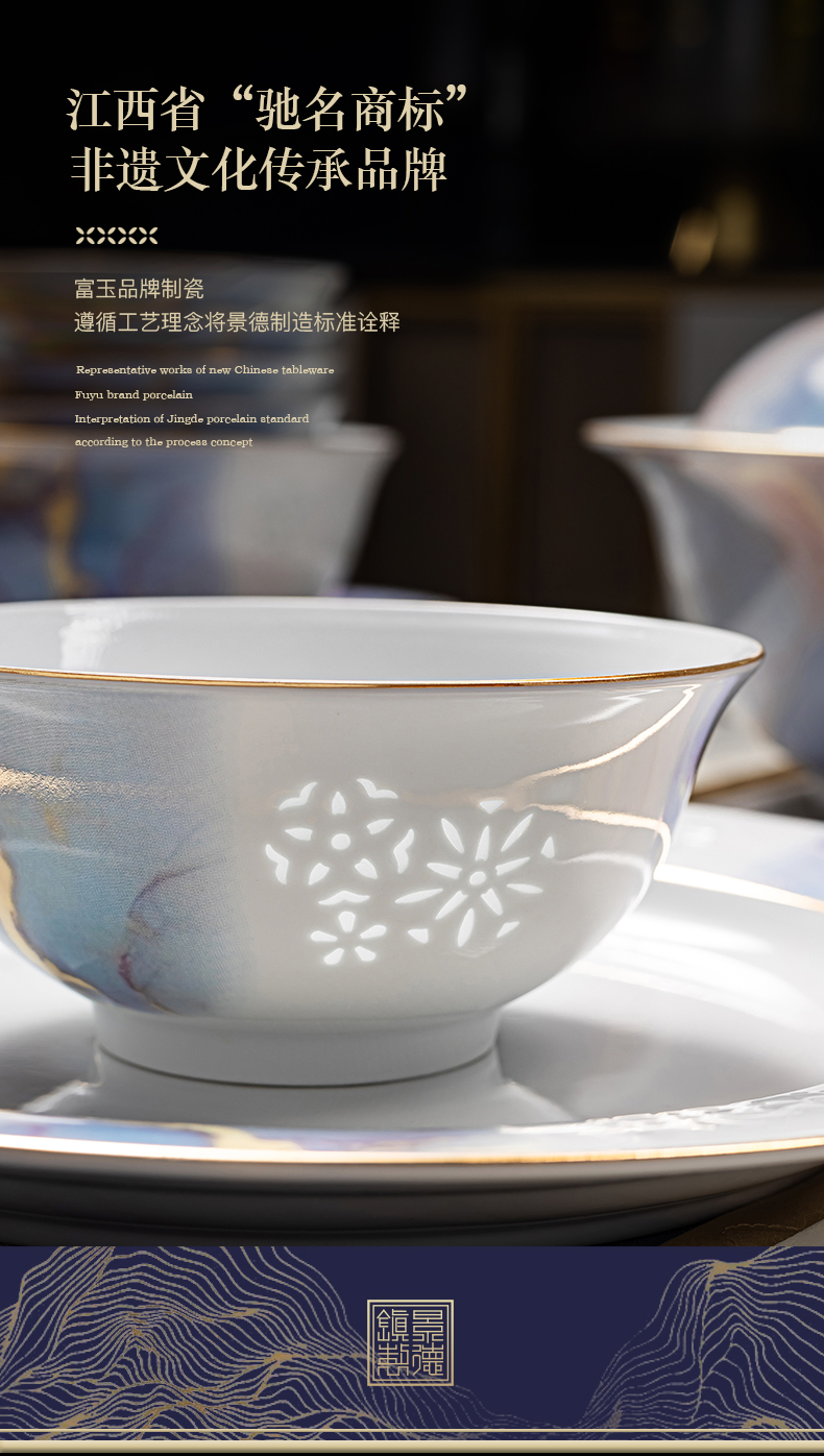 富玉 景德镇餐具新中式大胆撞色浮想餐具套装家用组合