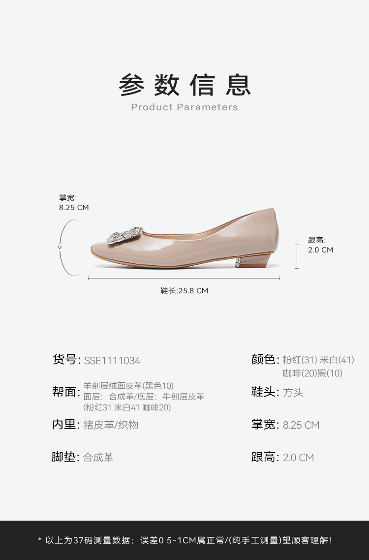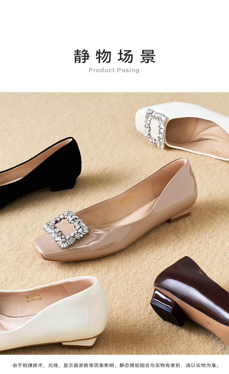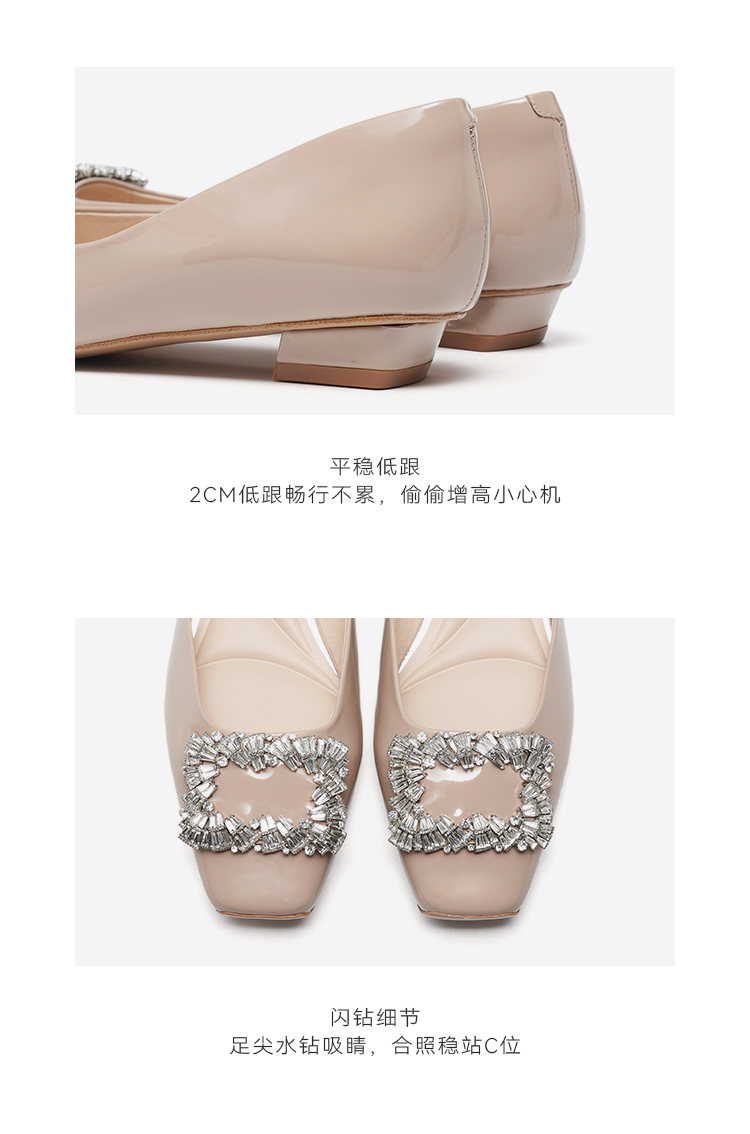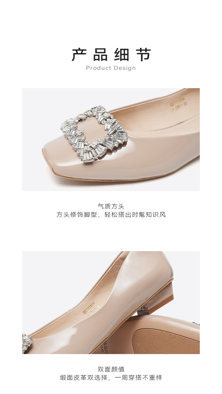 【小方镜系列】星期六26春新款优雅方头晶扣低跟单鞋SSE1111034