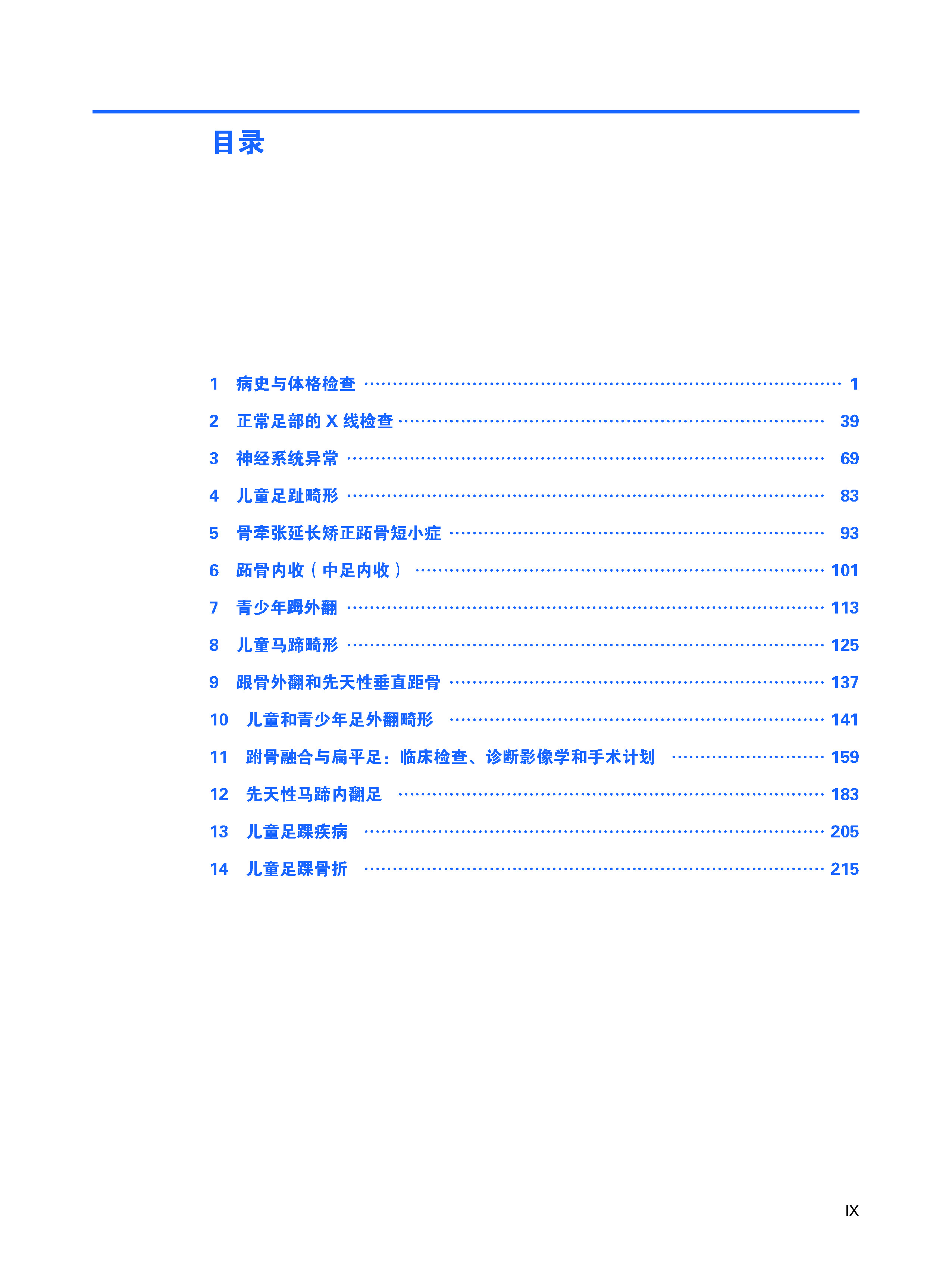 本书汇集了一批有着丰富经验的优秀儿童足踝专家,他们中有行业的领军人物、创伤专家、教授、学者。更重要的是还有家长的参与,他们洞悉作为家长对足踝手术的忧虑。很多作者经常参加儿童足踝手术国际交流。本书重点突出了生长发育期患儿的常见手术,但是就像“没有两片相同的雪花”一样,儿童先天畸形或者创伤也不尽相同,因此,我们更强调要因人而异。而本书可作为儿童足踝畸形手术的进阶基础。这正是编者的目标和愿景。