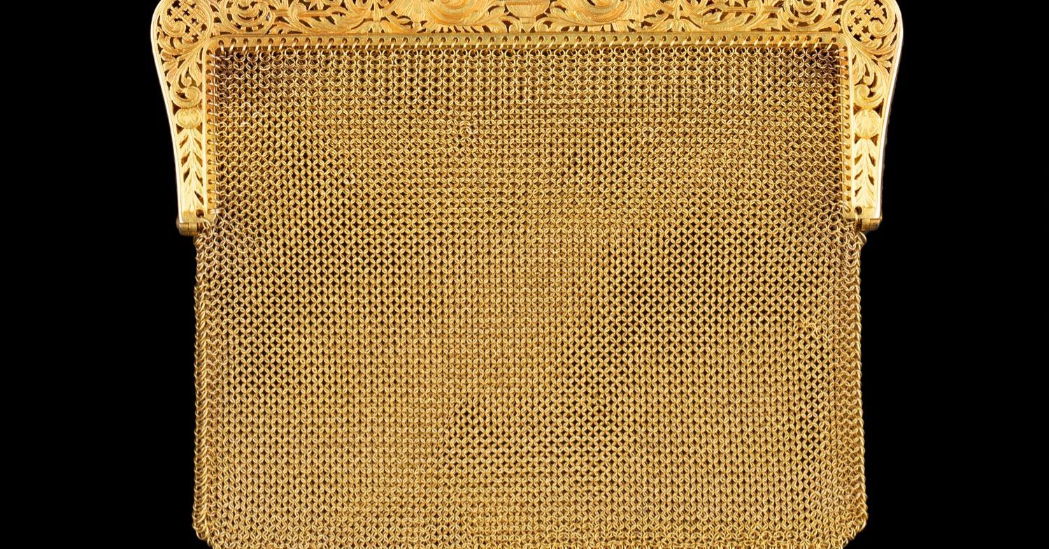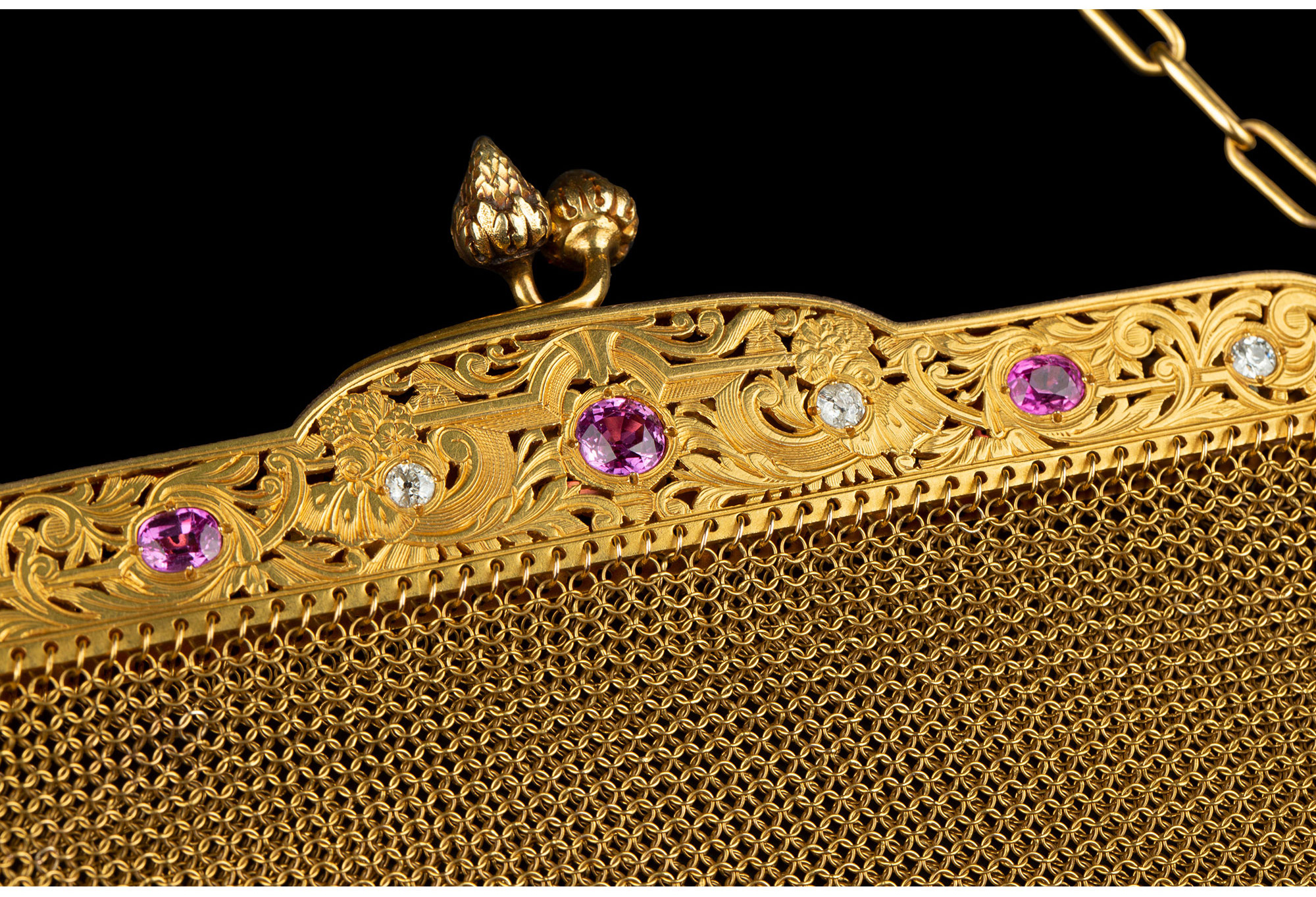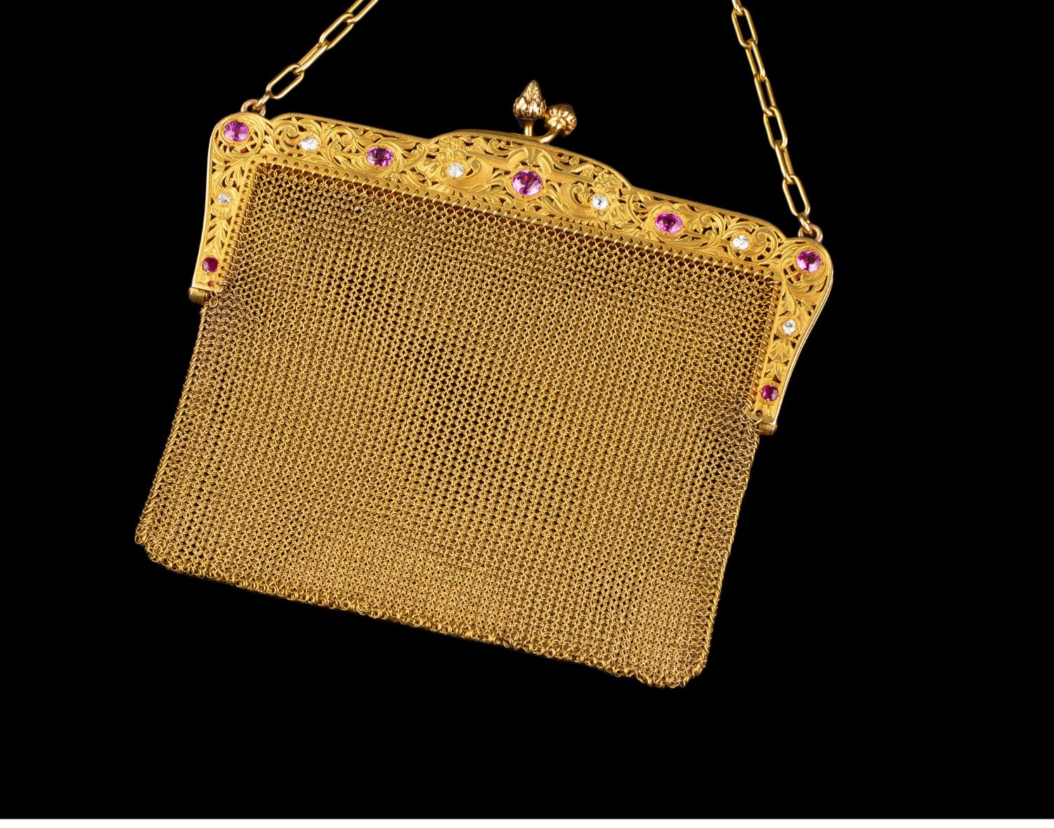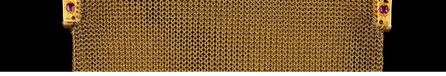 独角鹿西洋古董法国18K黄金镶嵌钻石粉色蓝宝石网状编织晚宴包