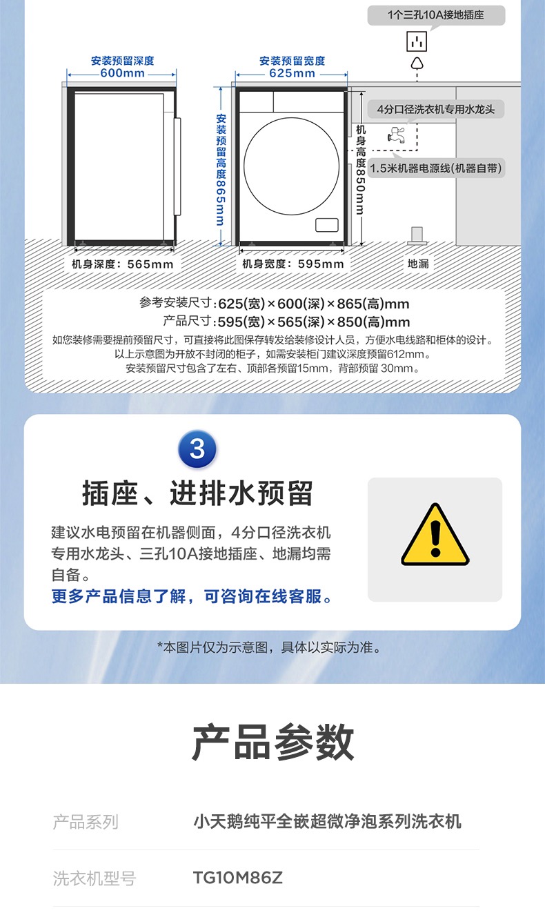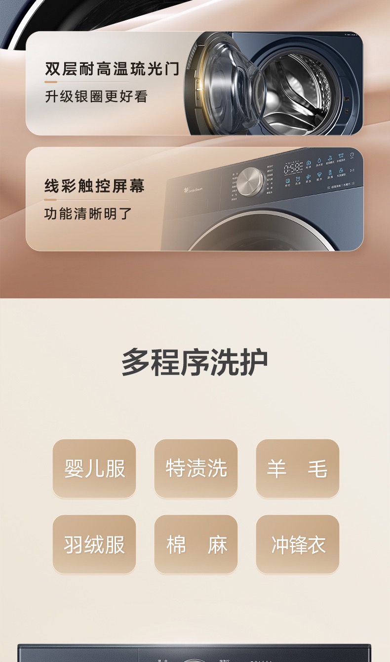 小天鹅(252197)洗衣机 TG10M86Z 滚筒洗衣机 瑾瑜蓝 220V,1Ph 50Hz 转速1400 带银离子