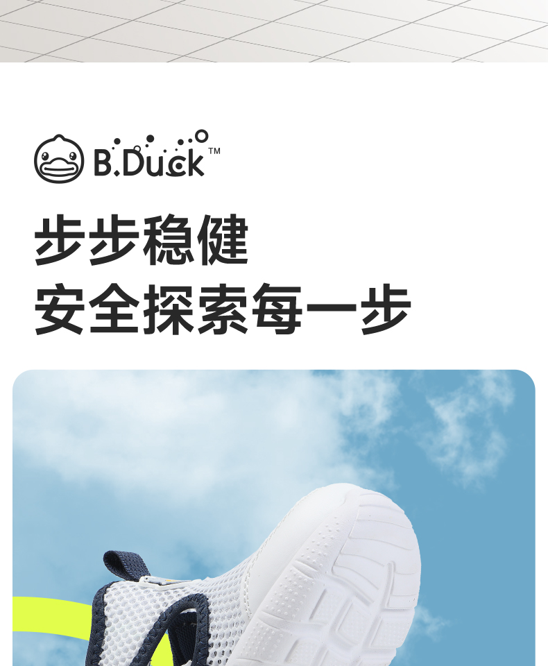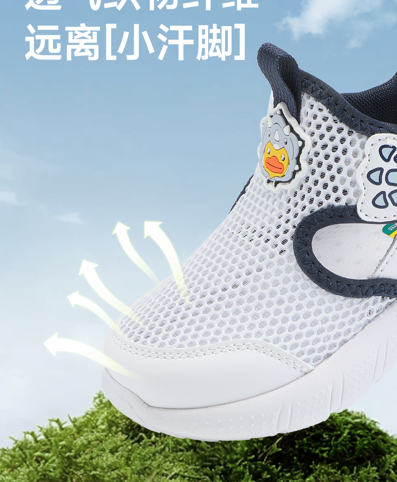 B.Duck小黄鸭童鞋男童运动鞋夏季儿童鞋子透气镂空单网鞋23-30 B1686854